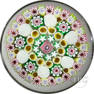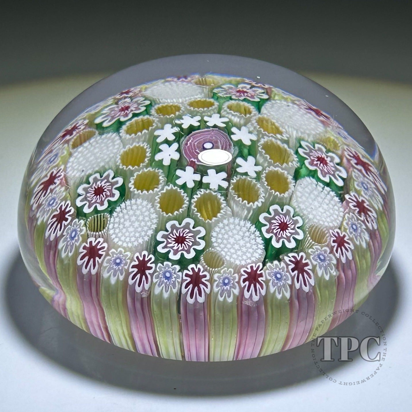 Damon MacNaught 2021 Glass Art Paperweight Complex Concentric Millefiori with Large Pink Rose Center