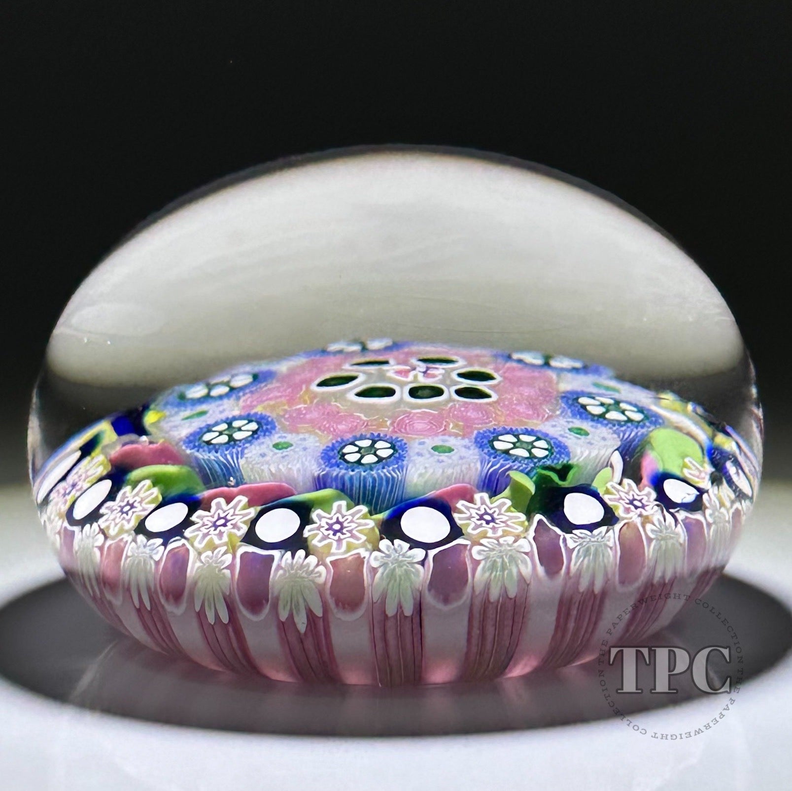 Damon MacNaught 2022 Glass Art Paperweight Complex Concentric Millefiori with Pink & Green Torsade