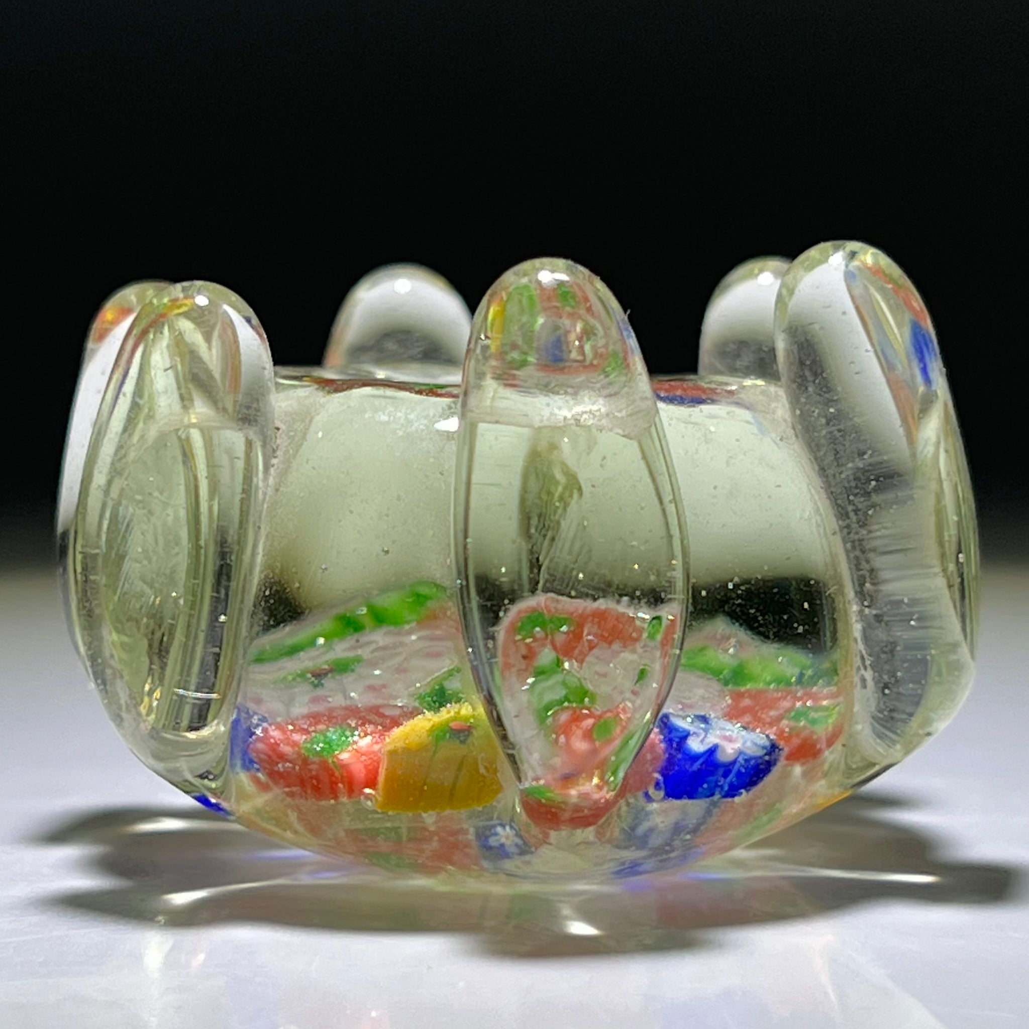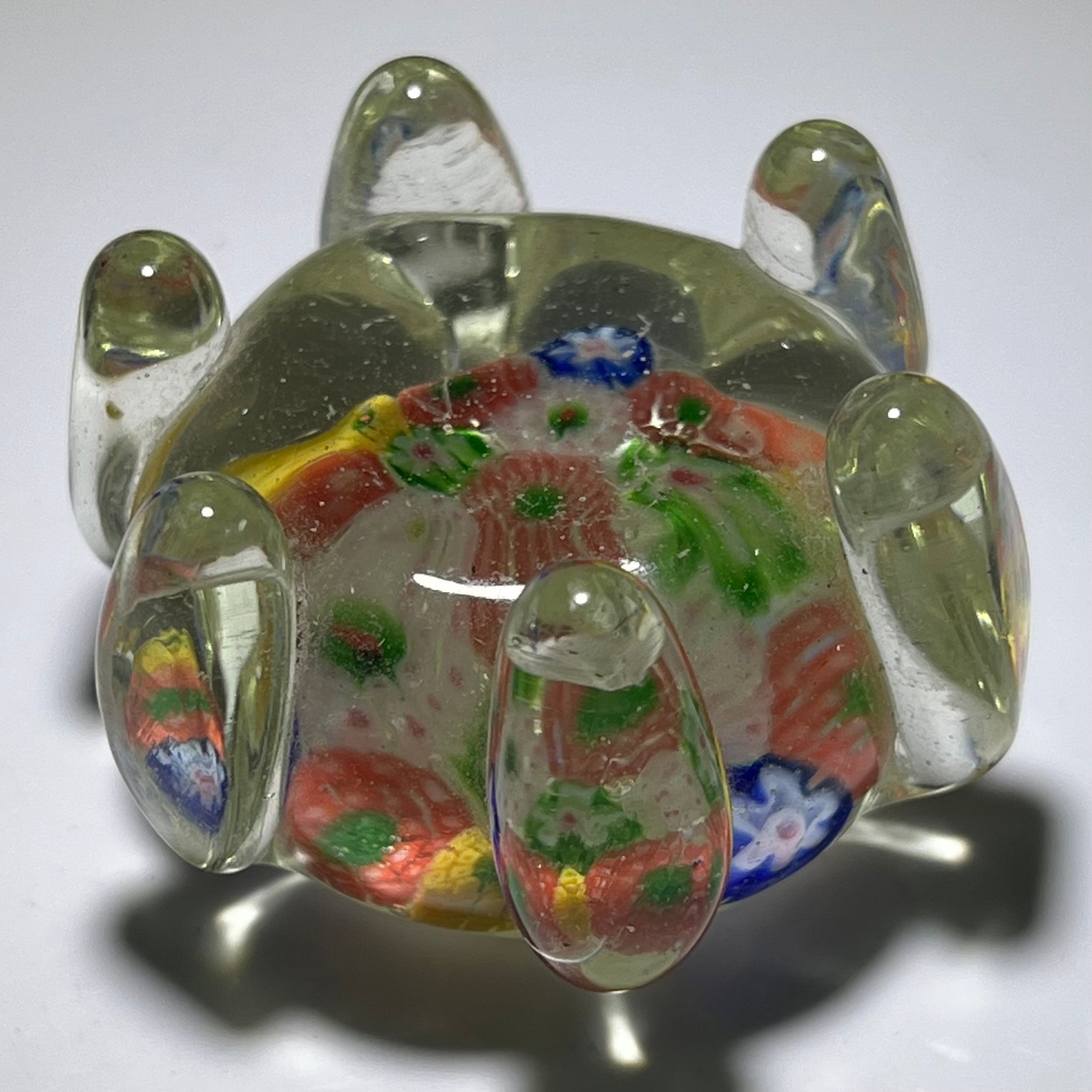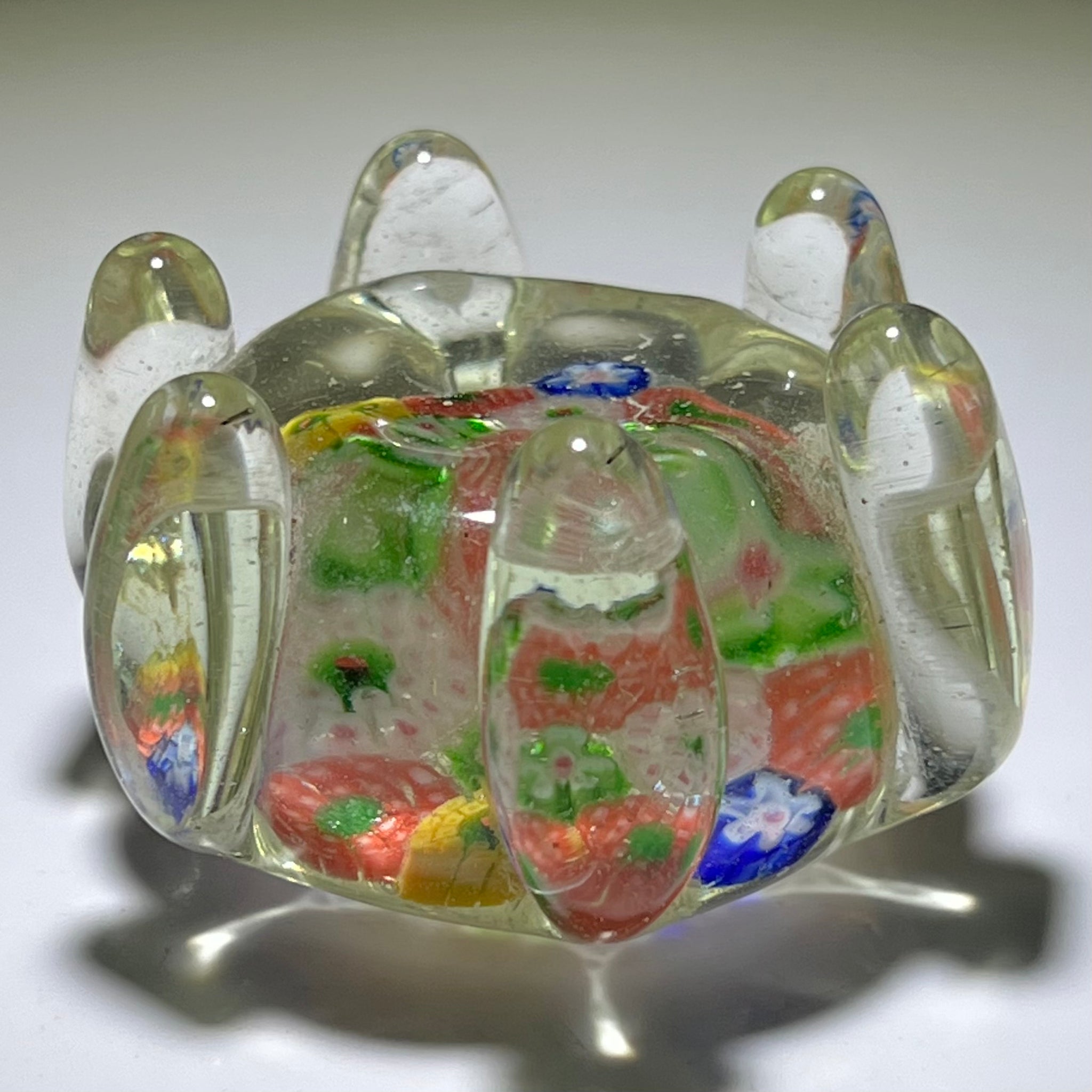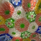 An unusual design circa 1930s design containing typical complex millefiori in red, yellow, white, blue and green. Decorated with applied flutes to the side of the dome.