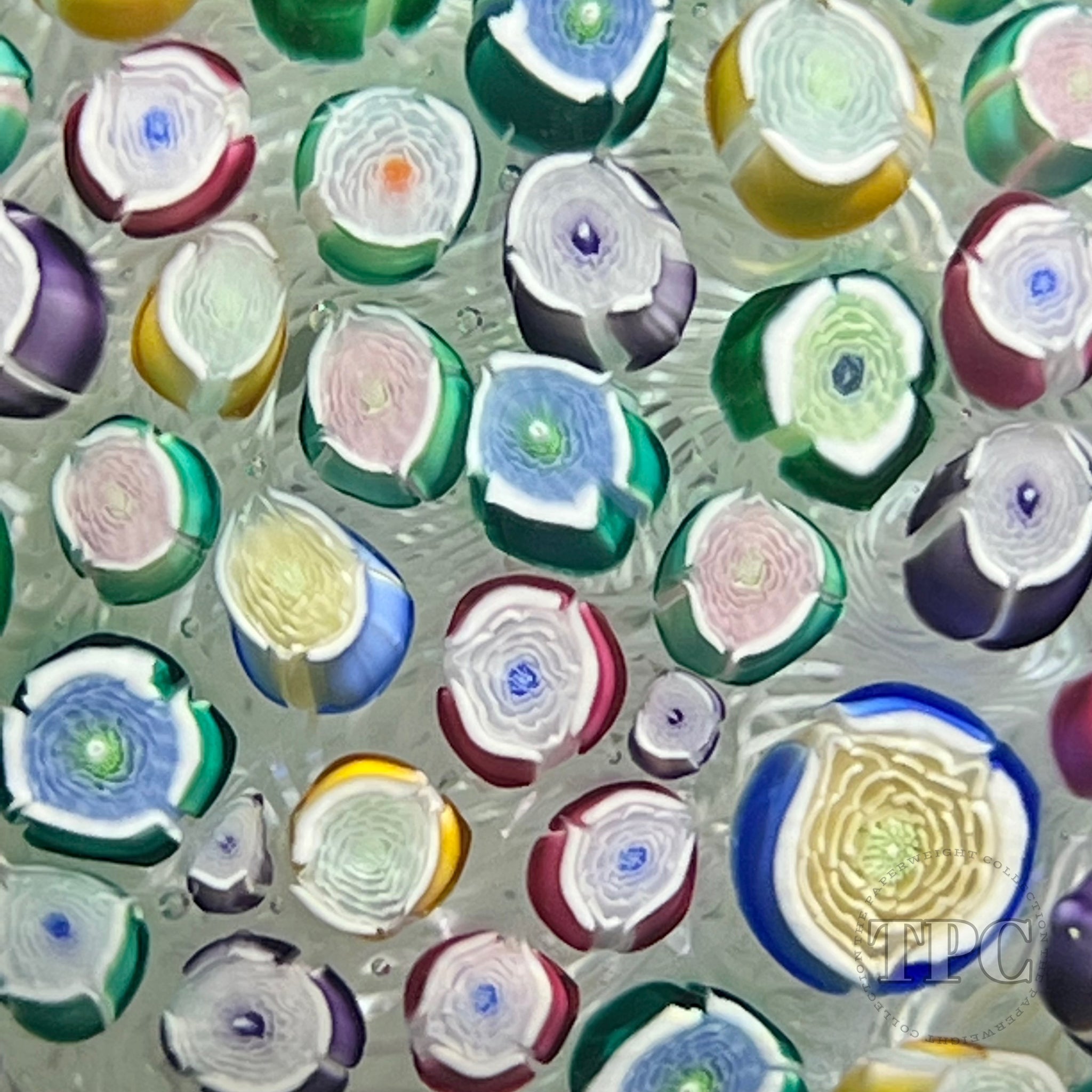 John Deacons Super Magnum Glass Art Paperweight Complex Closepack Millefiori Rose Piedouche