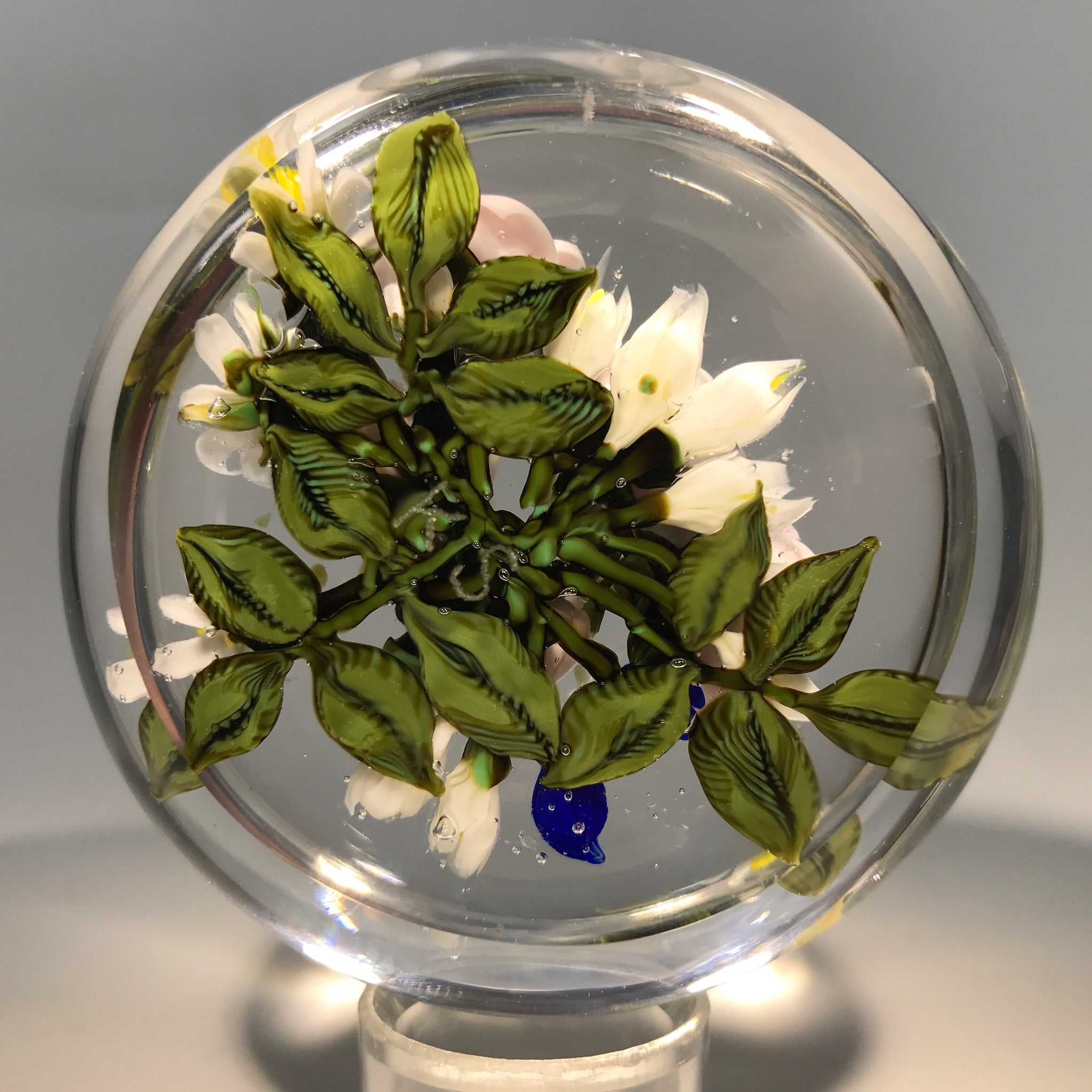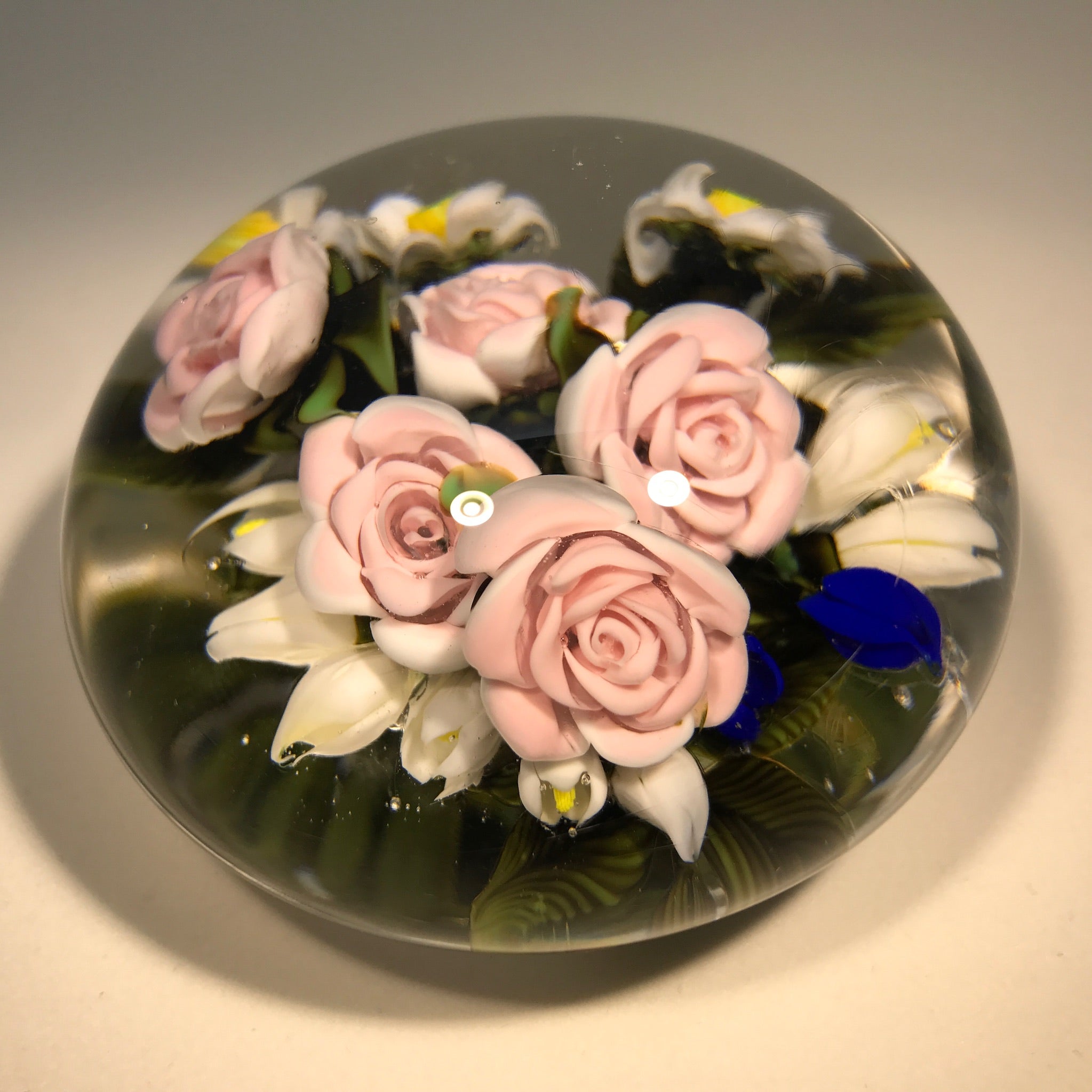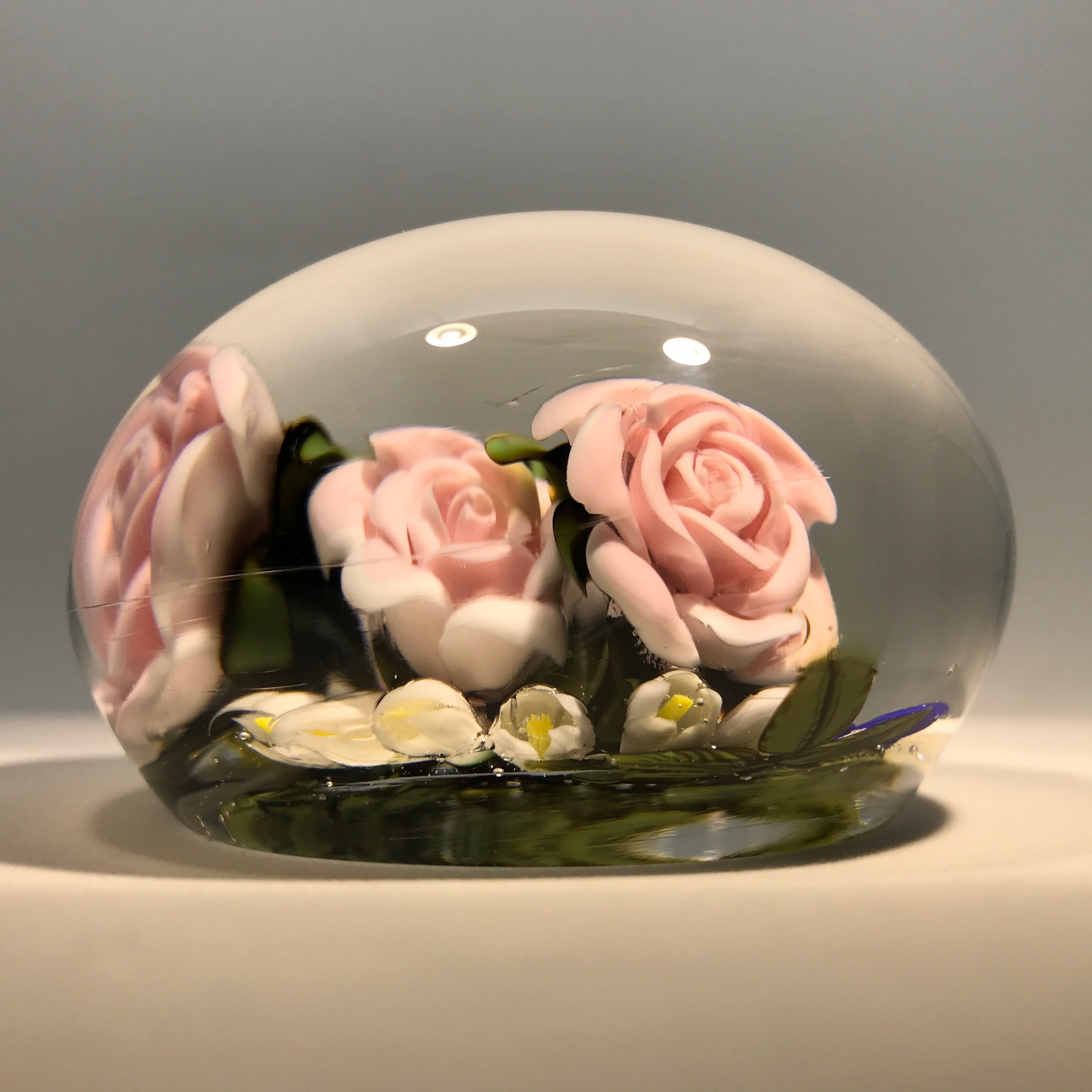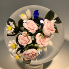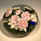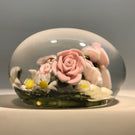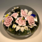 Large Katsumi Sakakibara Art Glass Paperweight Lampwork Pink Rose Bouquet