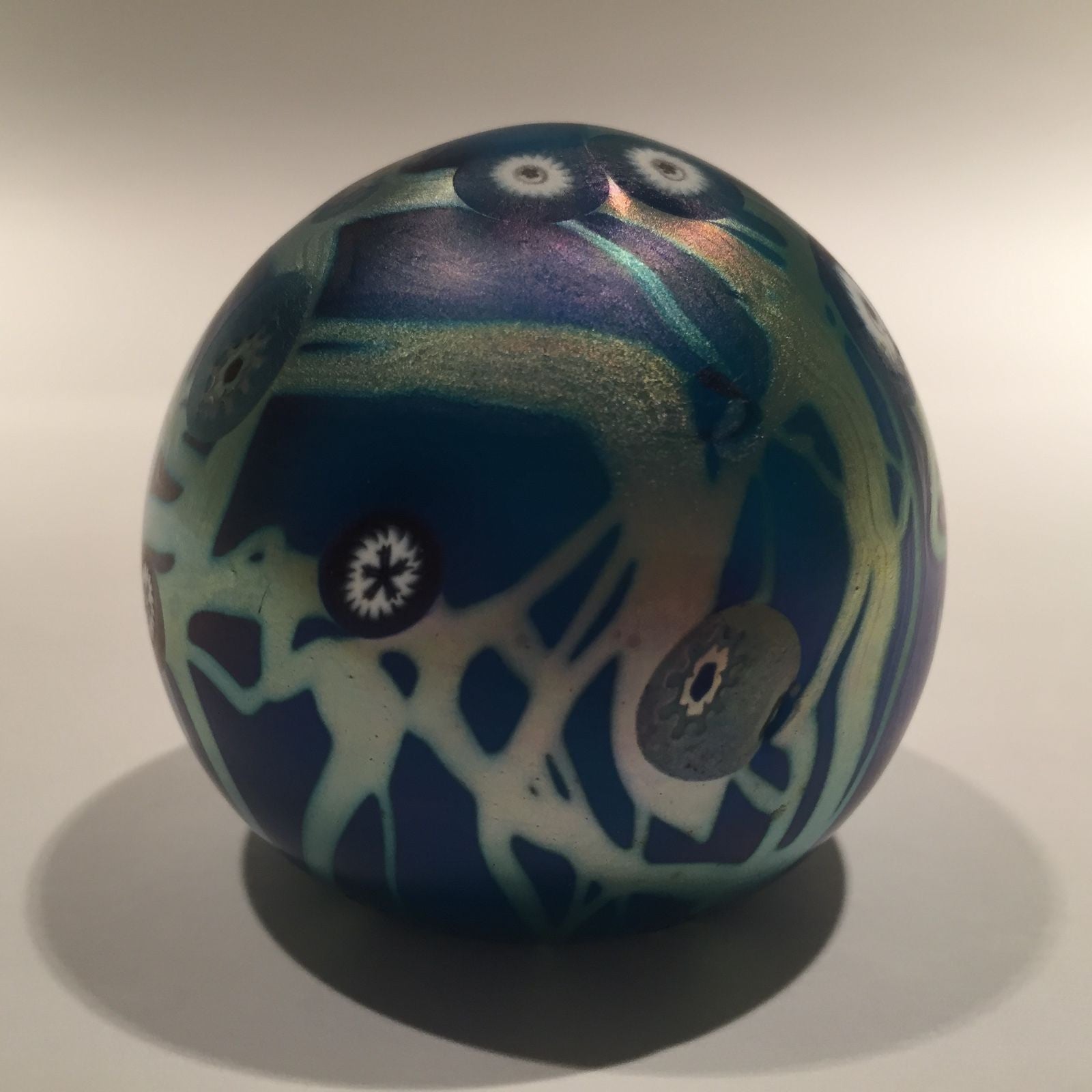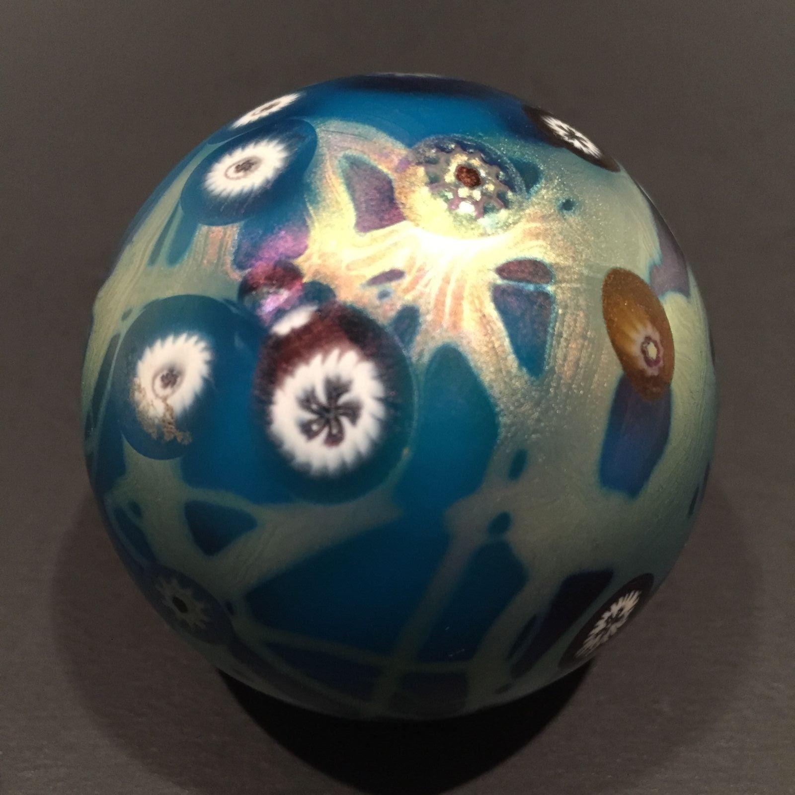 Signed Carl Radke Phoenix Studio Art Glass Paperweight Iridescent Millefiori