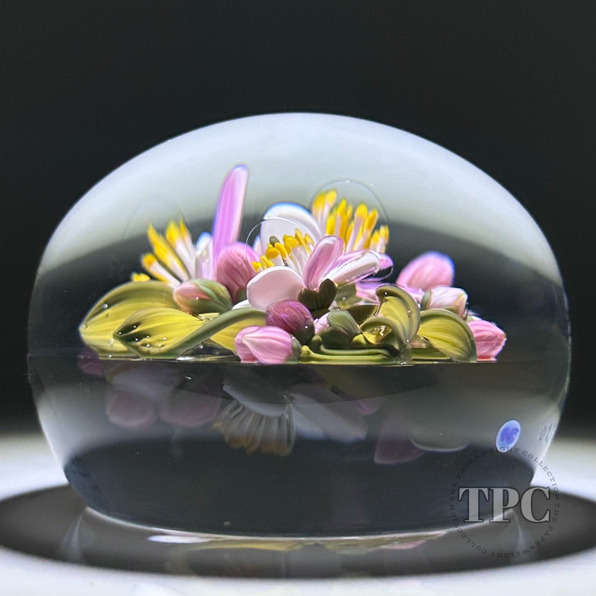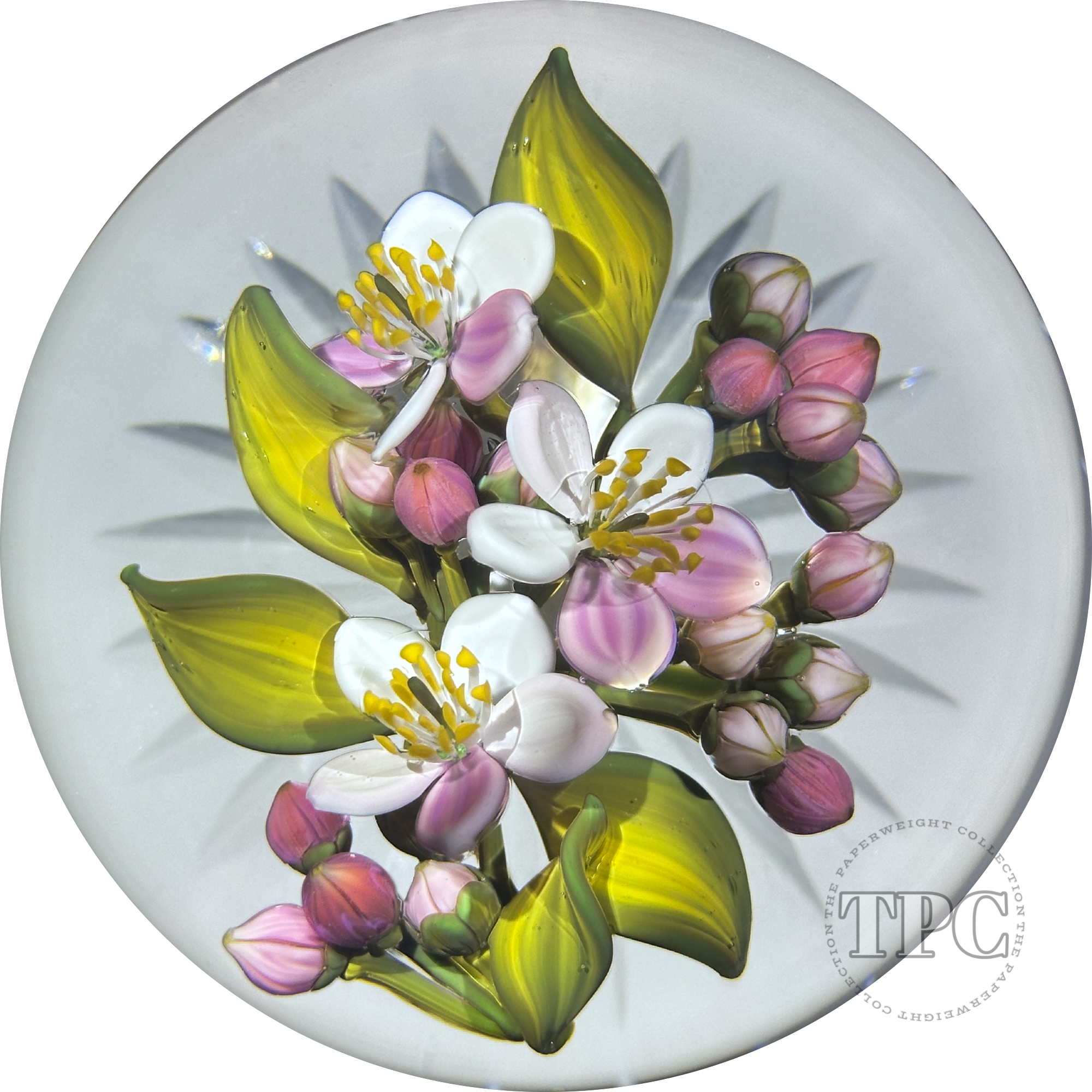 Gordon Smith 2025 Glass Art Paperweight Pink & White Apple Blossoms
