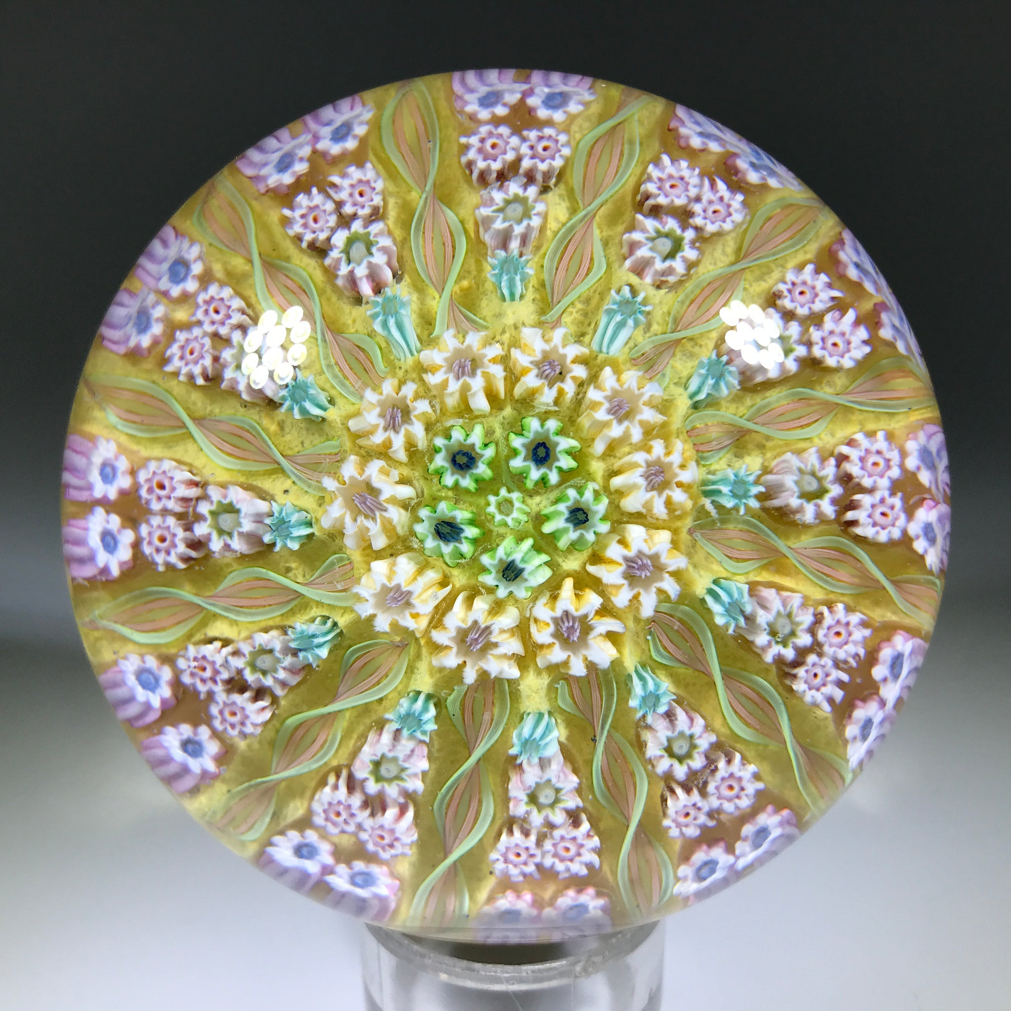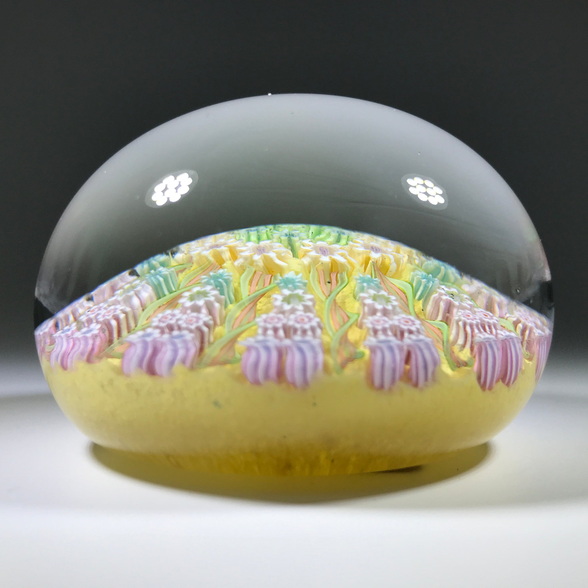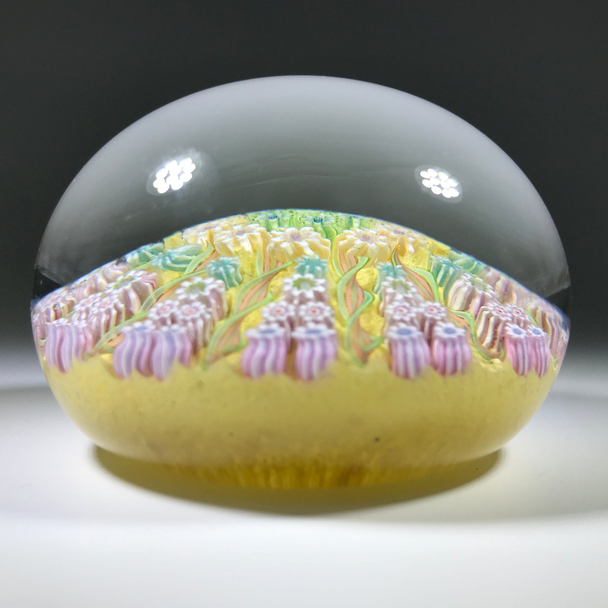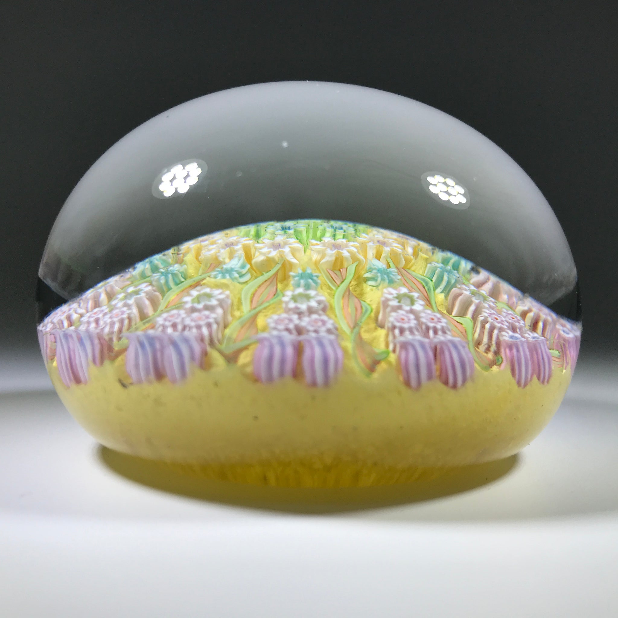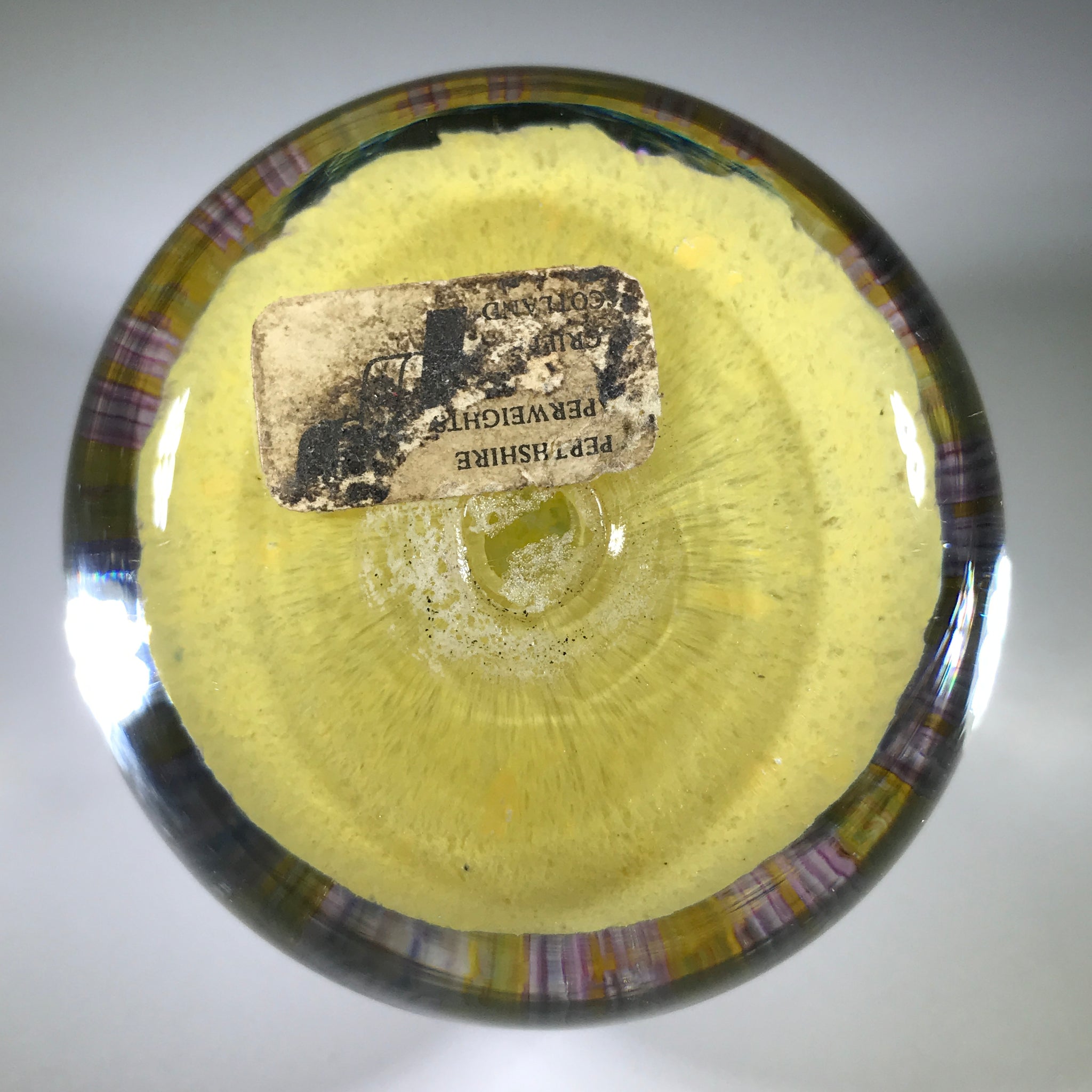 Vintage Perthshire Art Glass Paperweight Paneled Millefiori & Ribbon Twists Yellow PP2