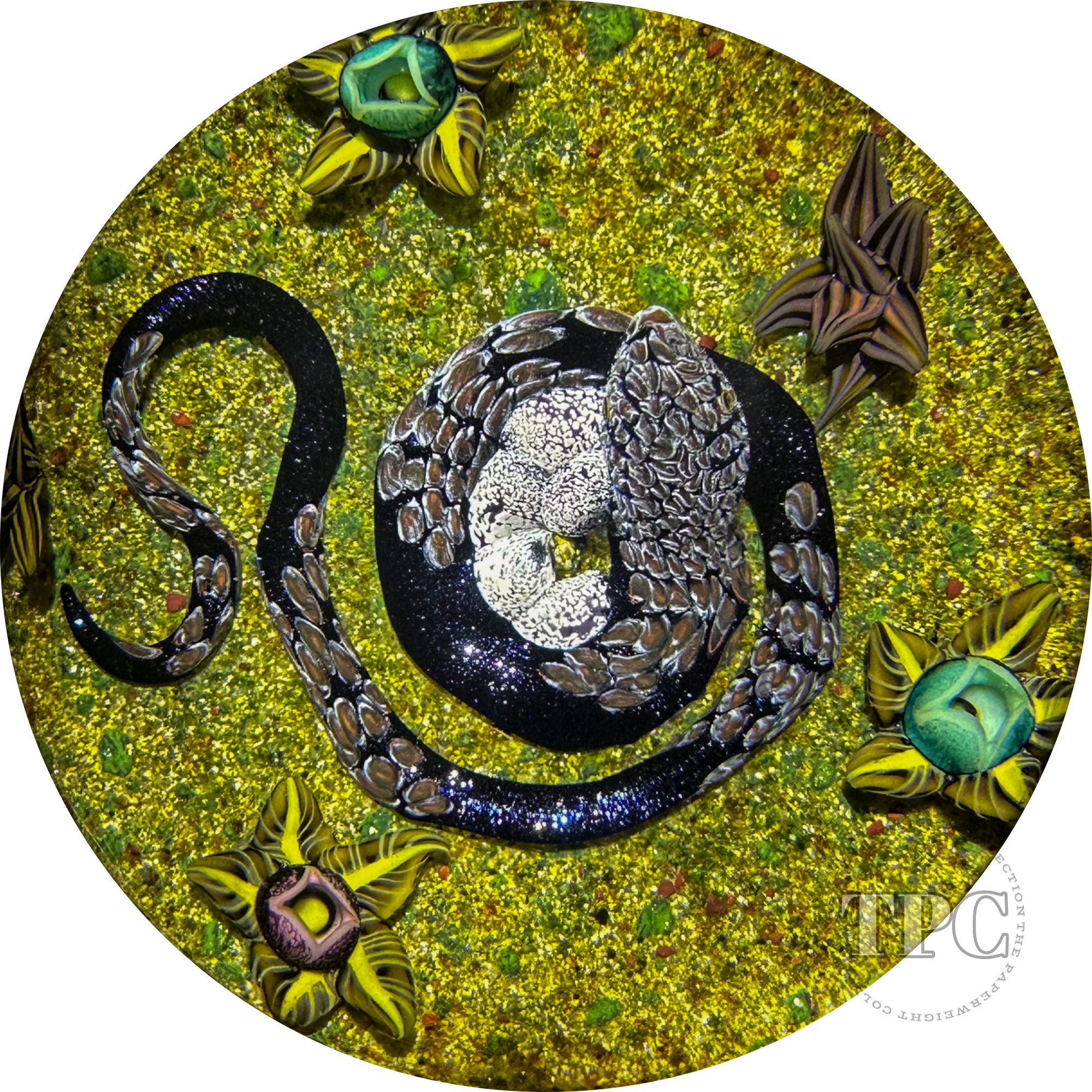William Manson 2024 Glass Art Paperweight Flamework Coiled Snake with Eggs
