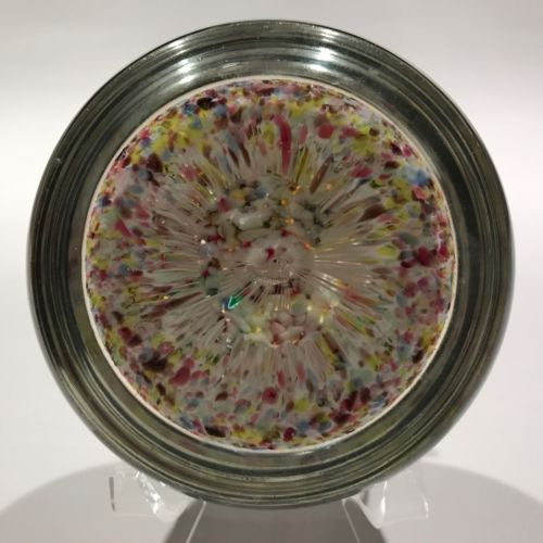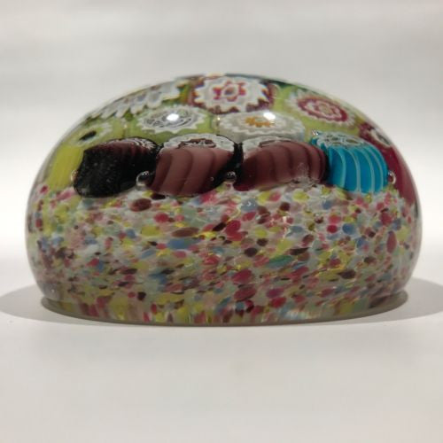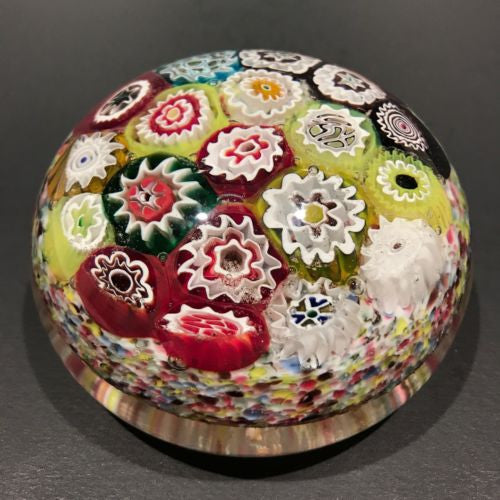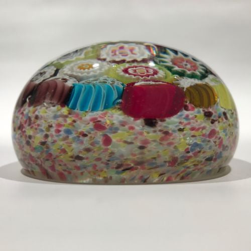 An early piece probably dating to the 1930's or 40’s with large rarely seen complex canes, closely packed and set high in the dome over a multicolored cushion of crushed glass.