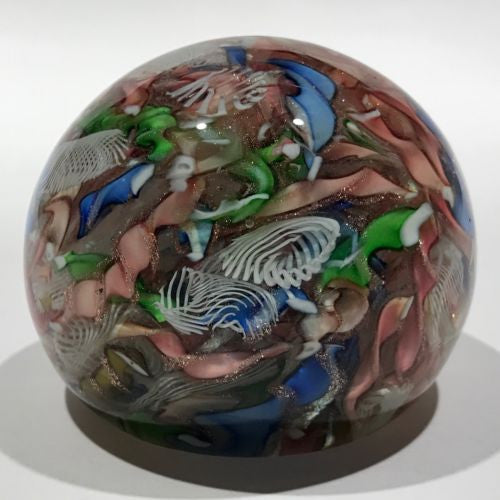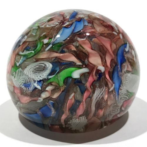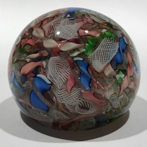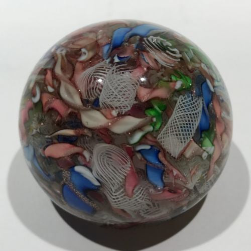 A fantastic early scramble, packed with latticino and aventurine bordered green, pink, & blue ribbon twists.