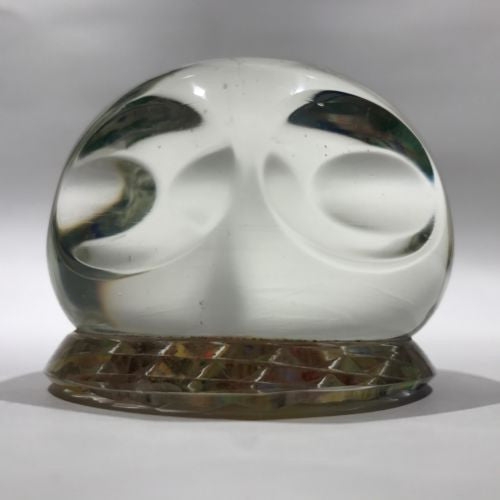 A very high quality Murano weight with closely packed complex canes including some rarely seen yellow flower murine canes. Finished with 6+1 faceting and a footed waffle cut base.
