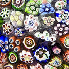This example is large at a full 3" in diameter and is in superb condition with out flaw. It contains countless complex millefiori and four figural stemmed flower murrine.