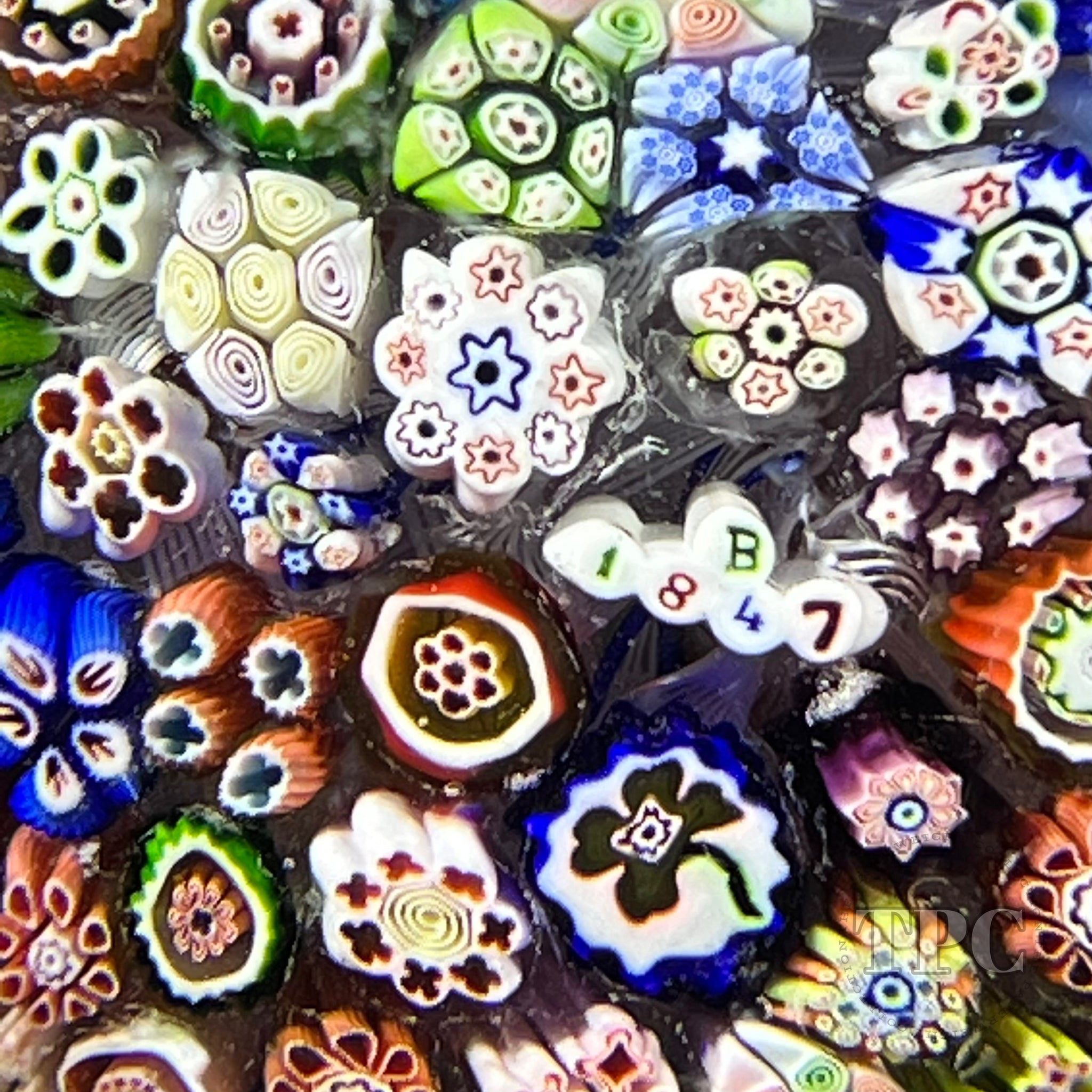 Antique Baccarat Dated 1847 Glass Art Paperweight Closepack "Church Weight" with Complex Millefiori & Flower Stem Murrine