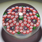 Large Antique Clichy Glass Art Paperweight Six Lobed Pink Garland with Purple & Green millefiori Accents