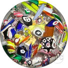 A nice scramble featuring numerous whole and partial complex millefiori, colorful ribbon twists and eagle silhouette canes.