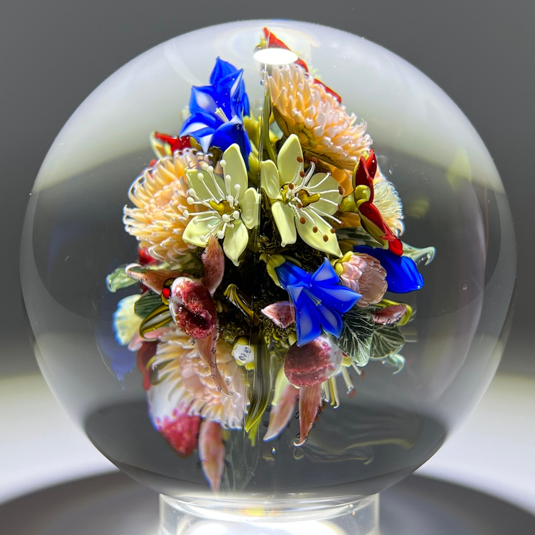 David Graeber 2016 Magnum Flamework Double Sided Flower Bouquet Glass Art Orb Sculpture