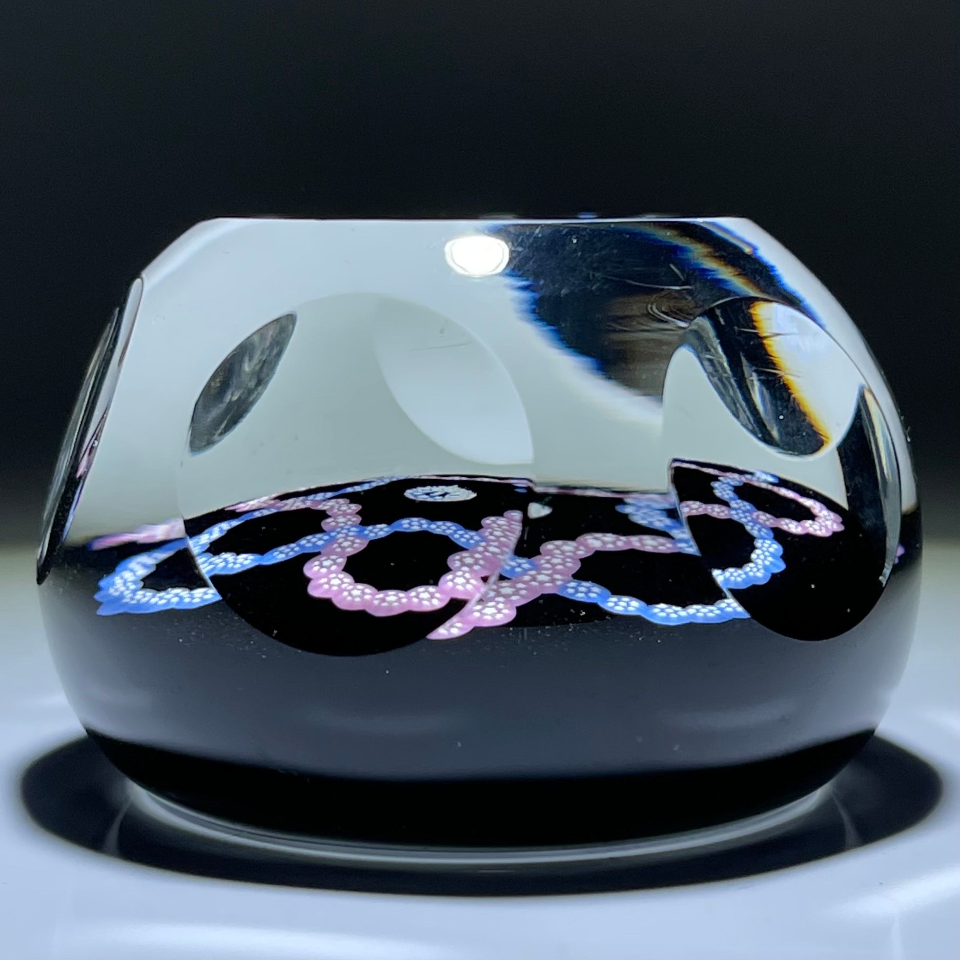 Faceted Caithness Whitefriars 1982 Interlaced Trefoil Millefiori Garland on Black Ground