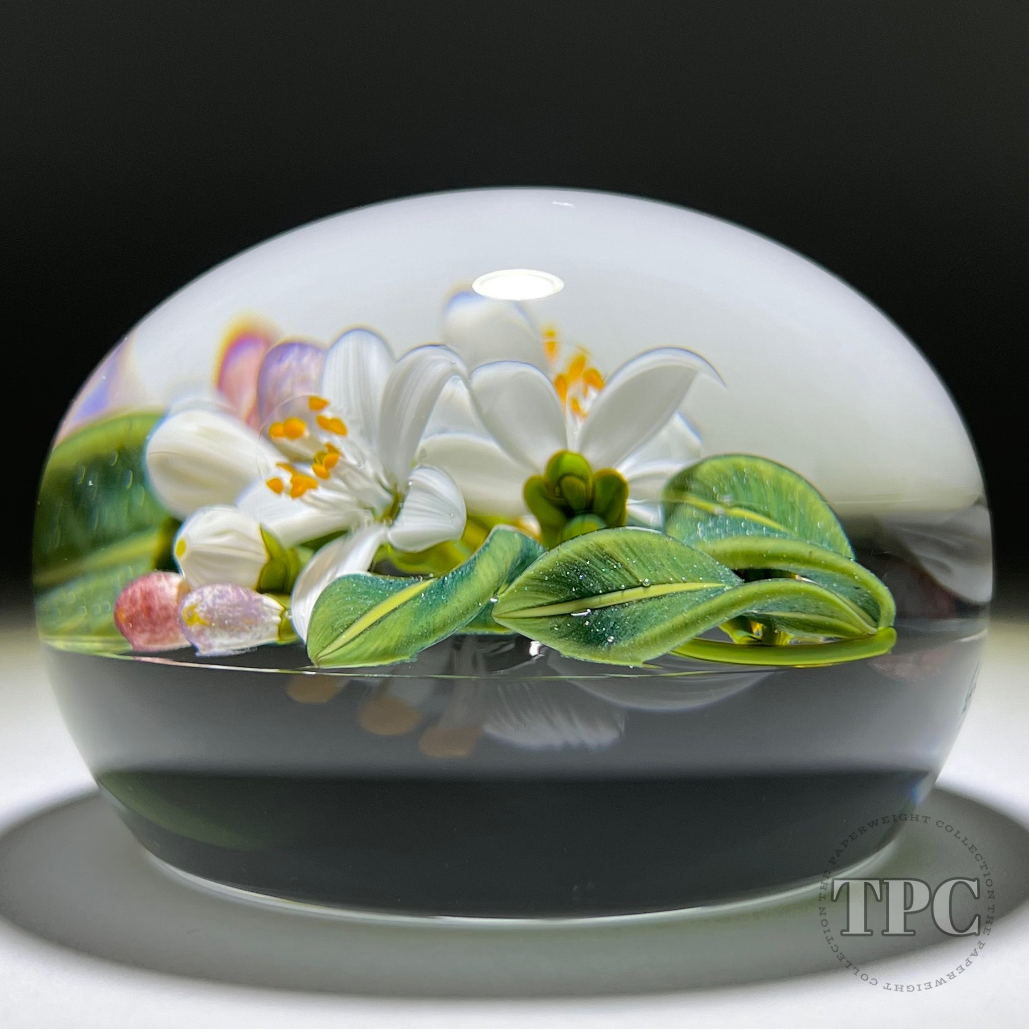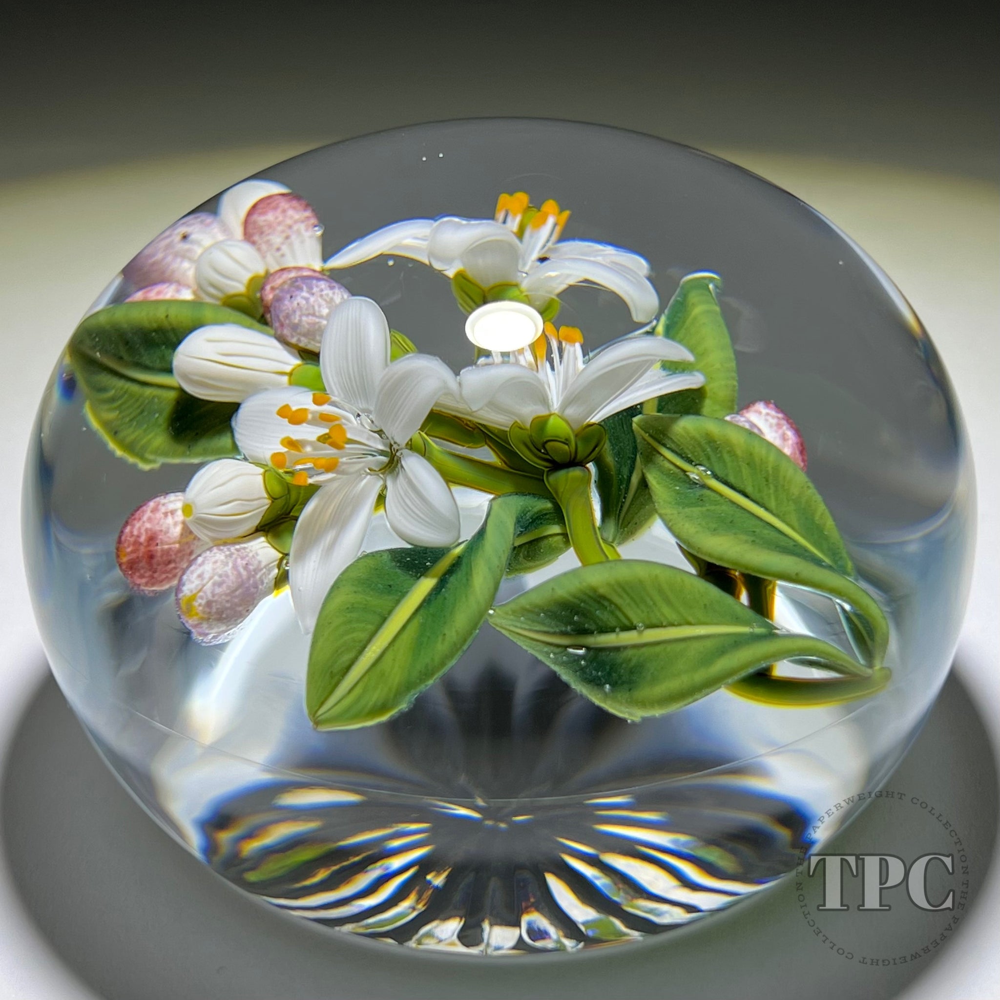 Gordon Smith 2022 Glass Art Paperweight Flamework Lemon Blossoms with Star-cut Base