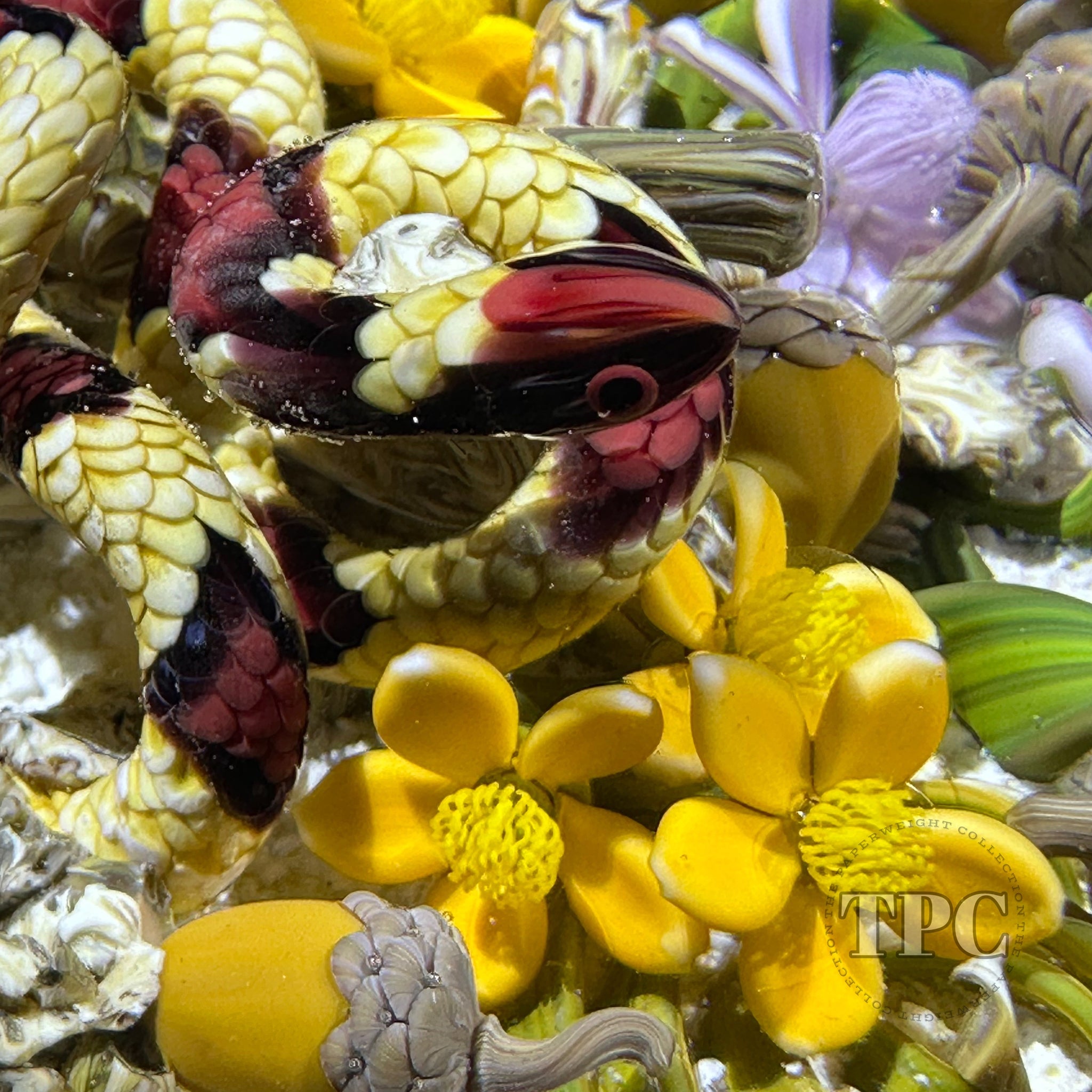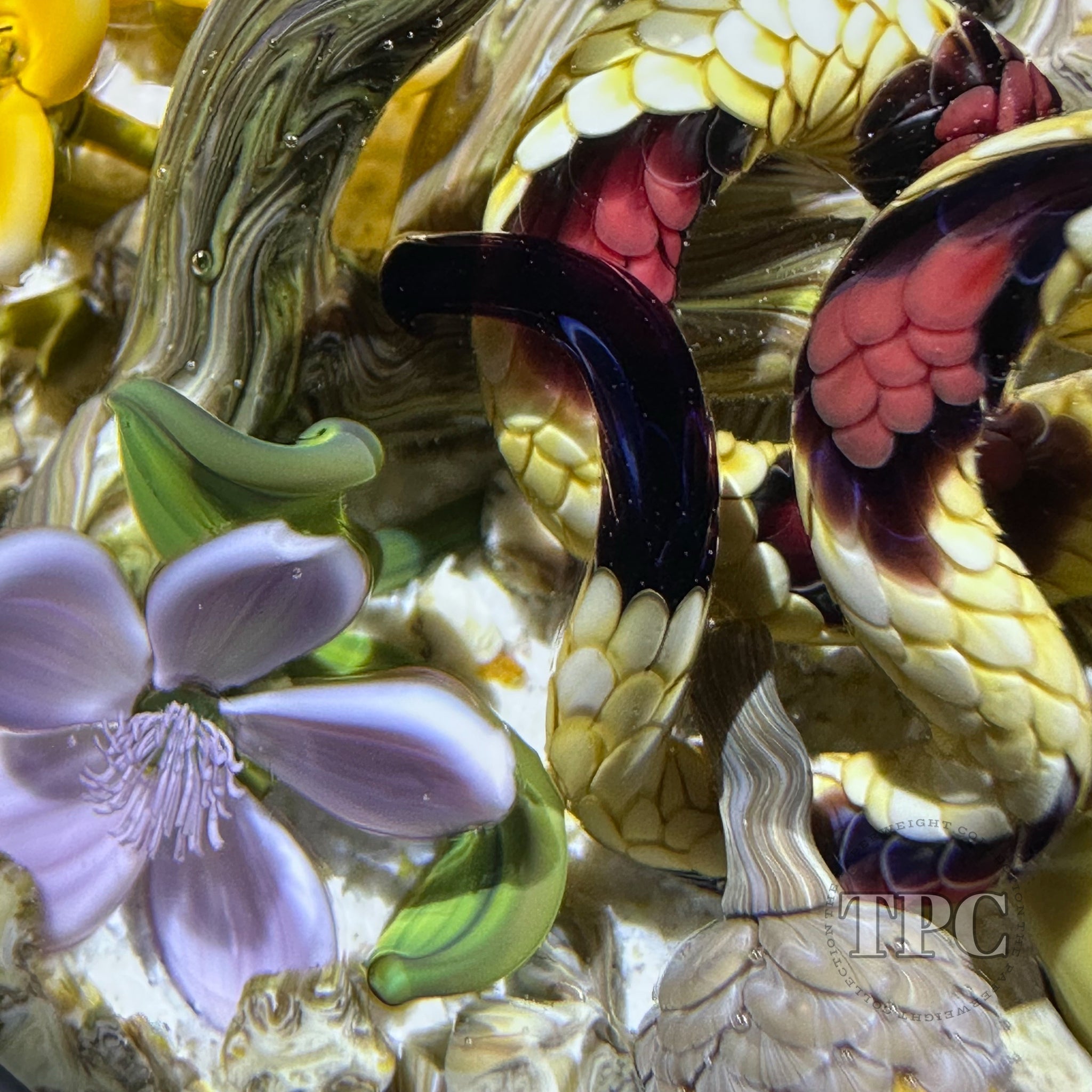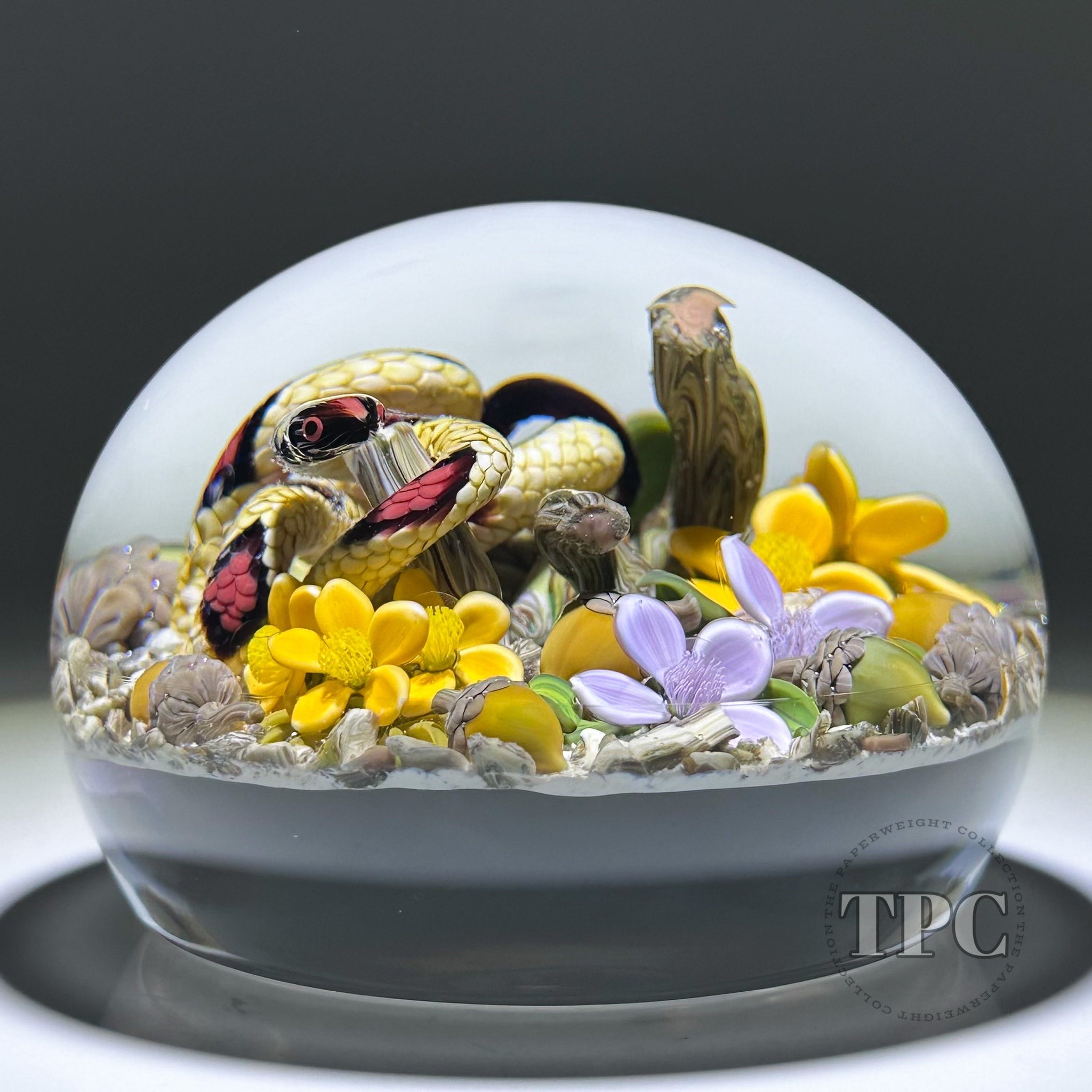 Gordon Smith 2025 Glass Art Paperweight Naturalistic Flamework Corn Snake with Perennials and Acorns