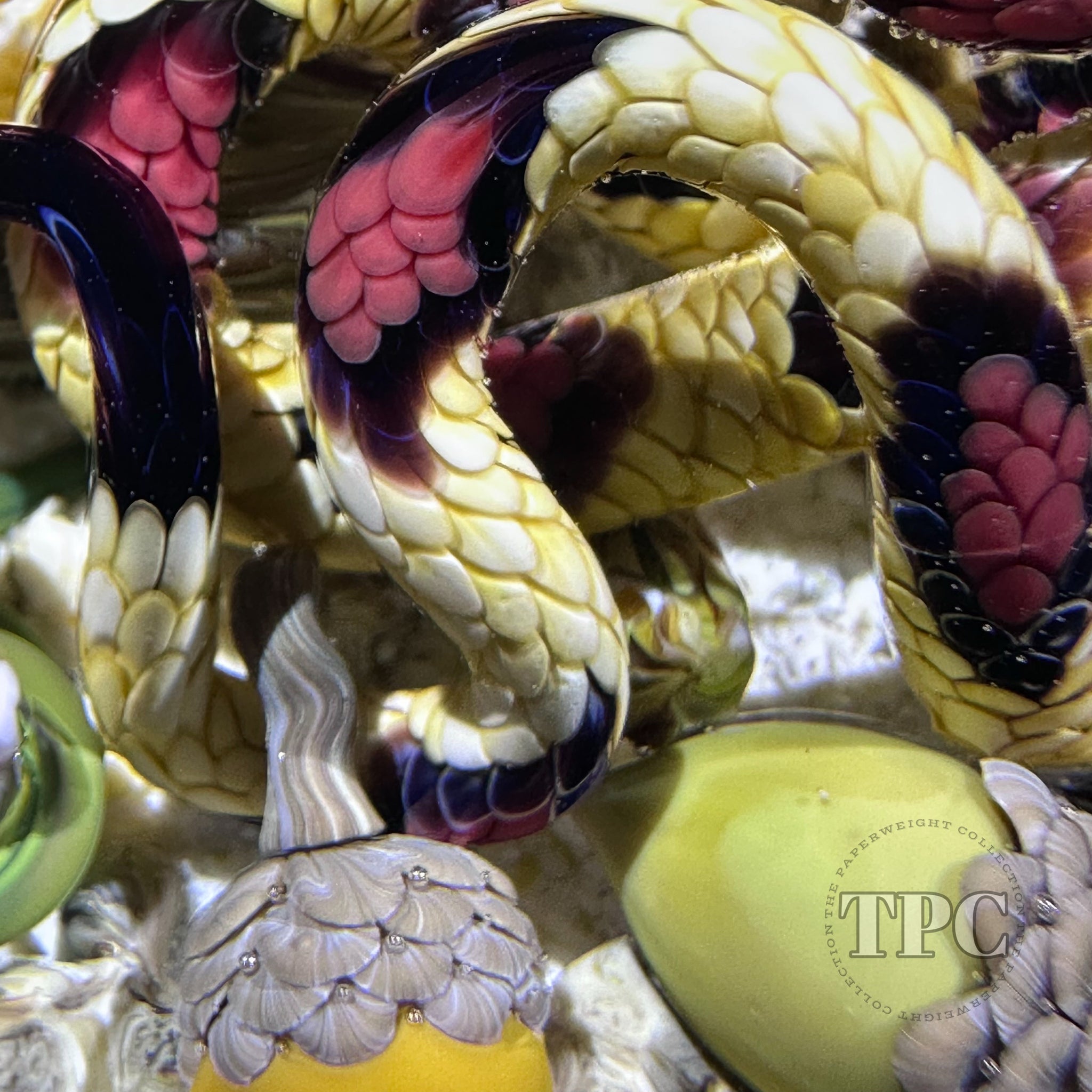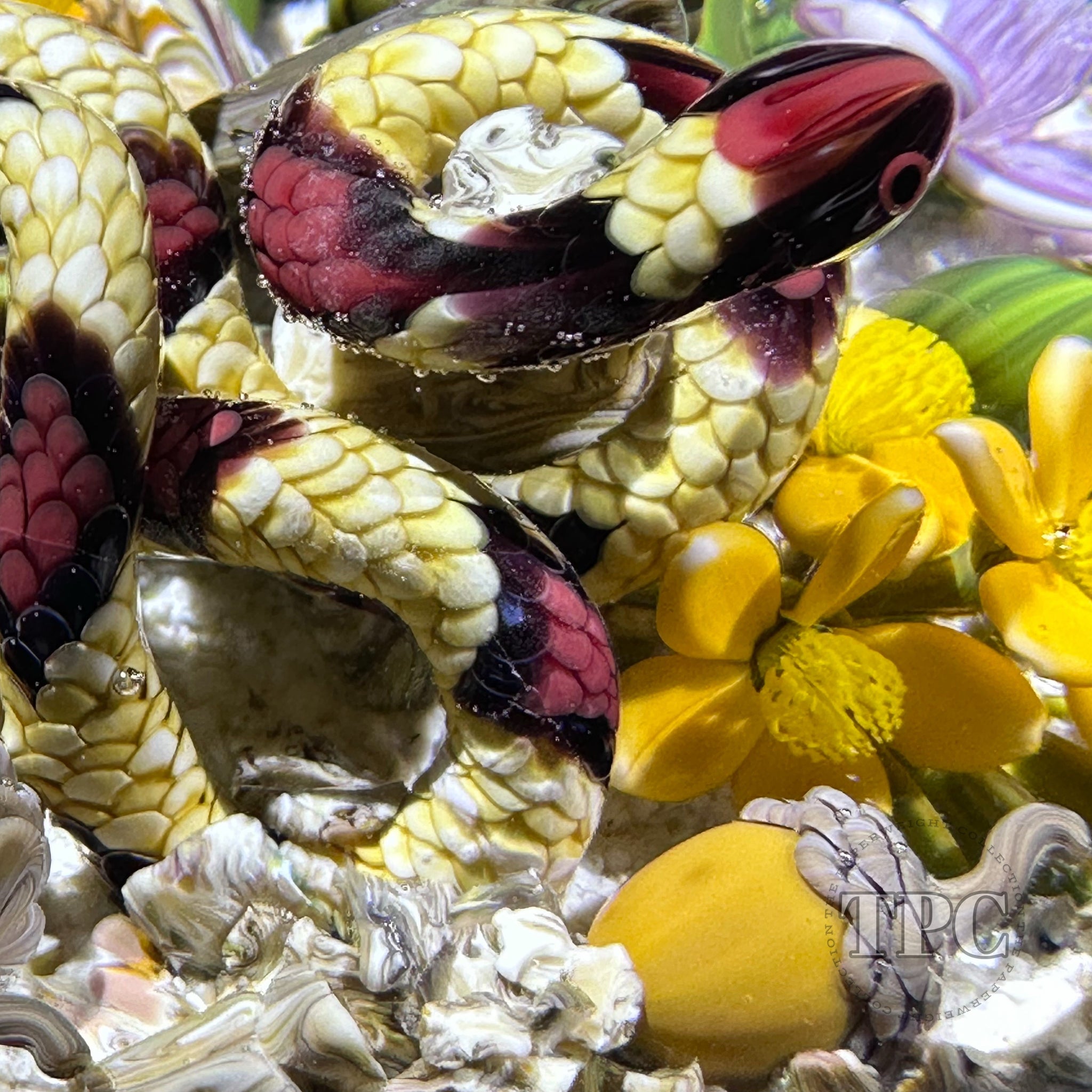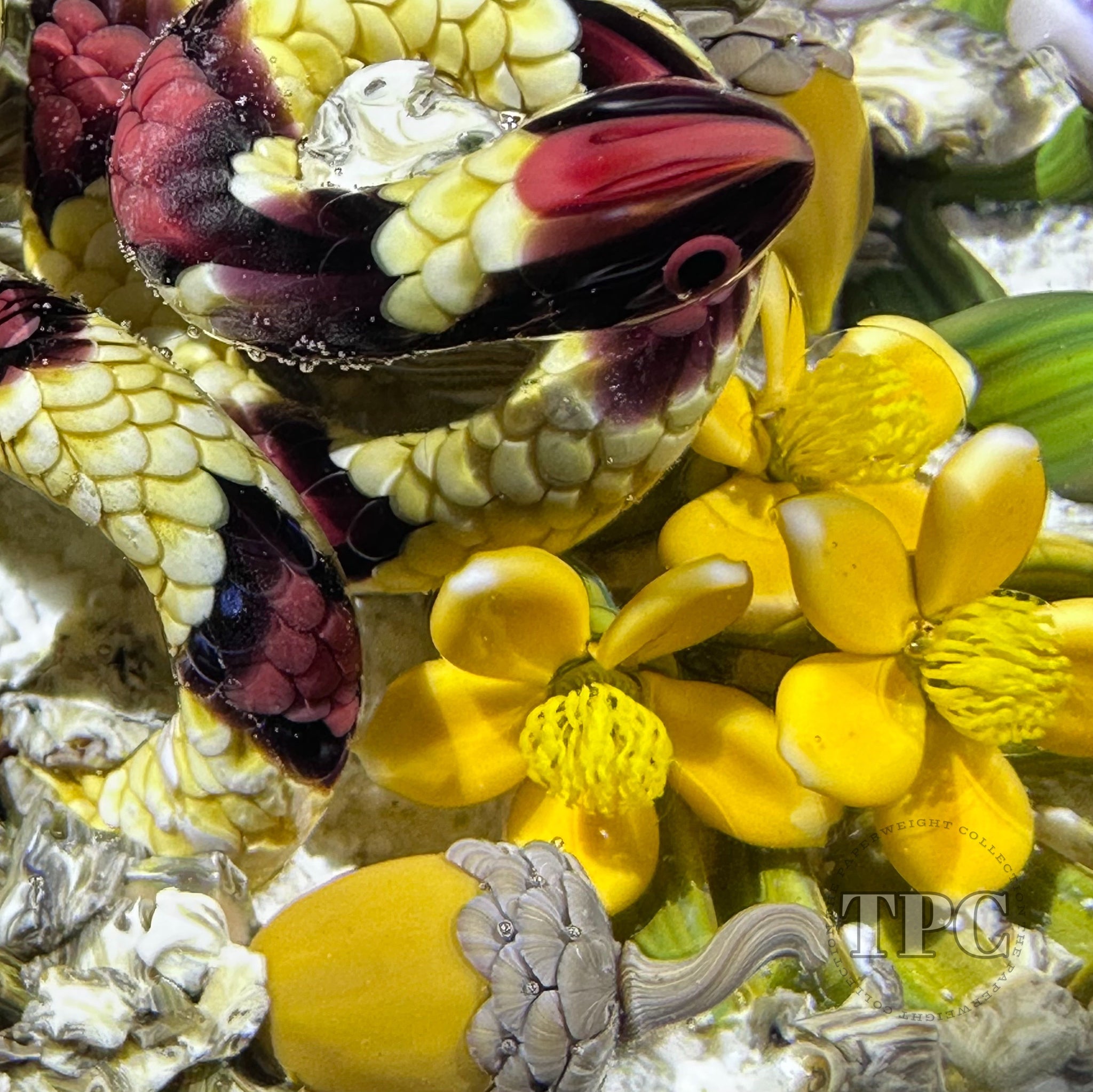 Gordon Smith 2025 Glass Art Paperweight Naturalistic Flamework Corn Snake with Perennials and Acorns