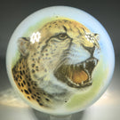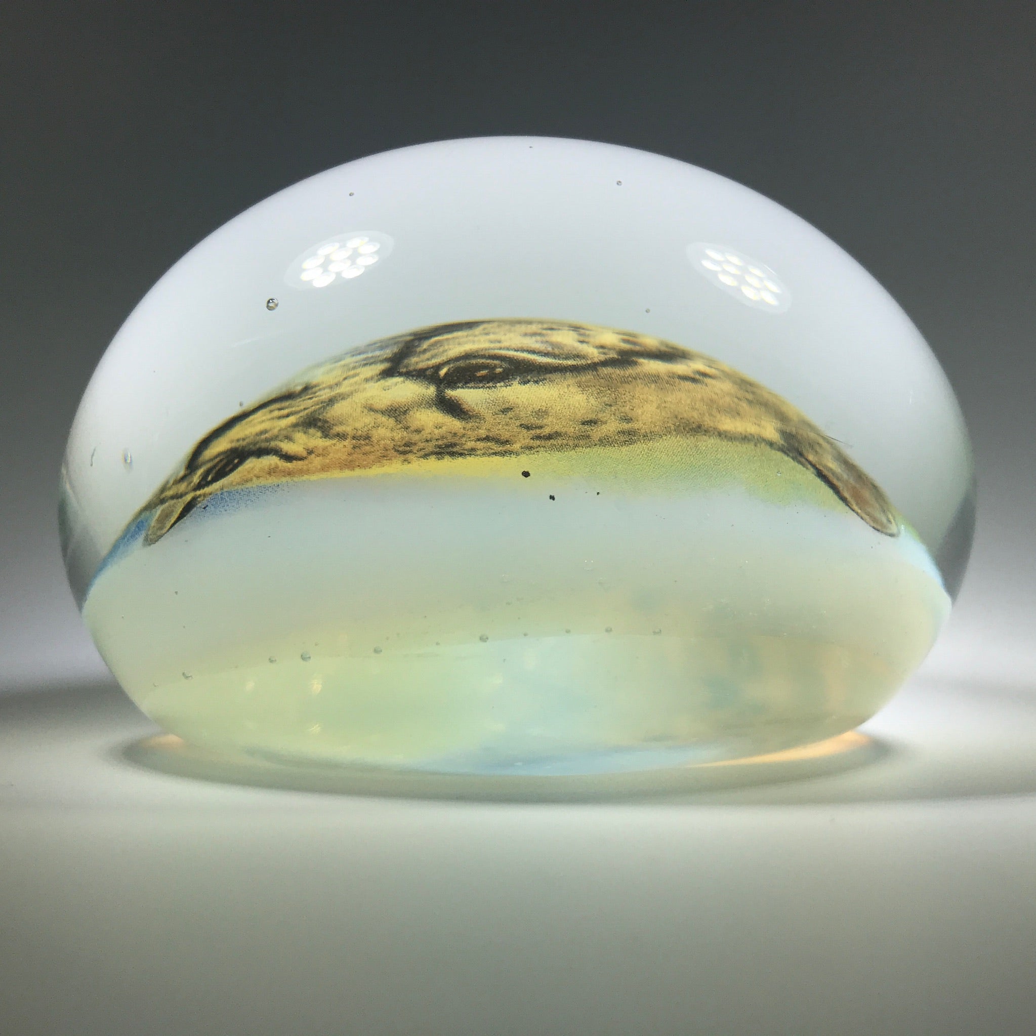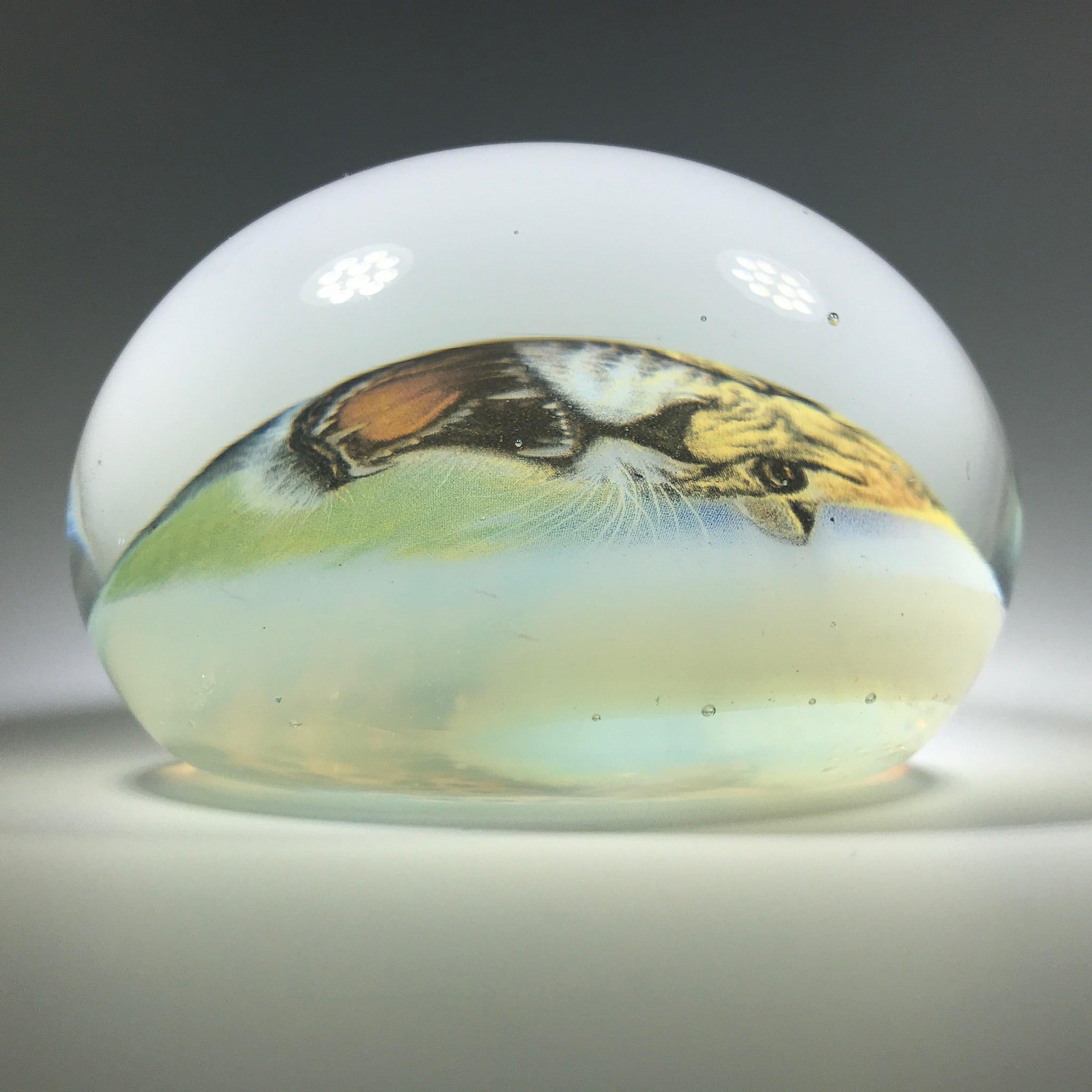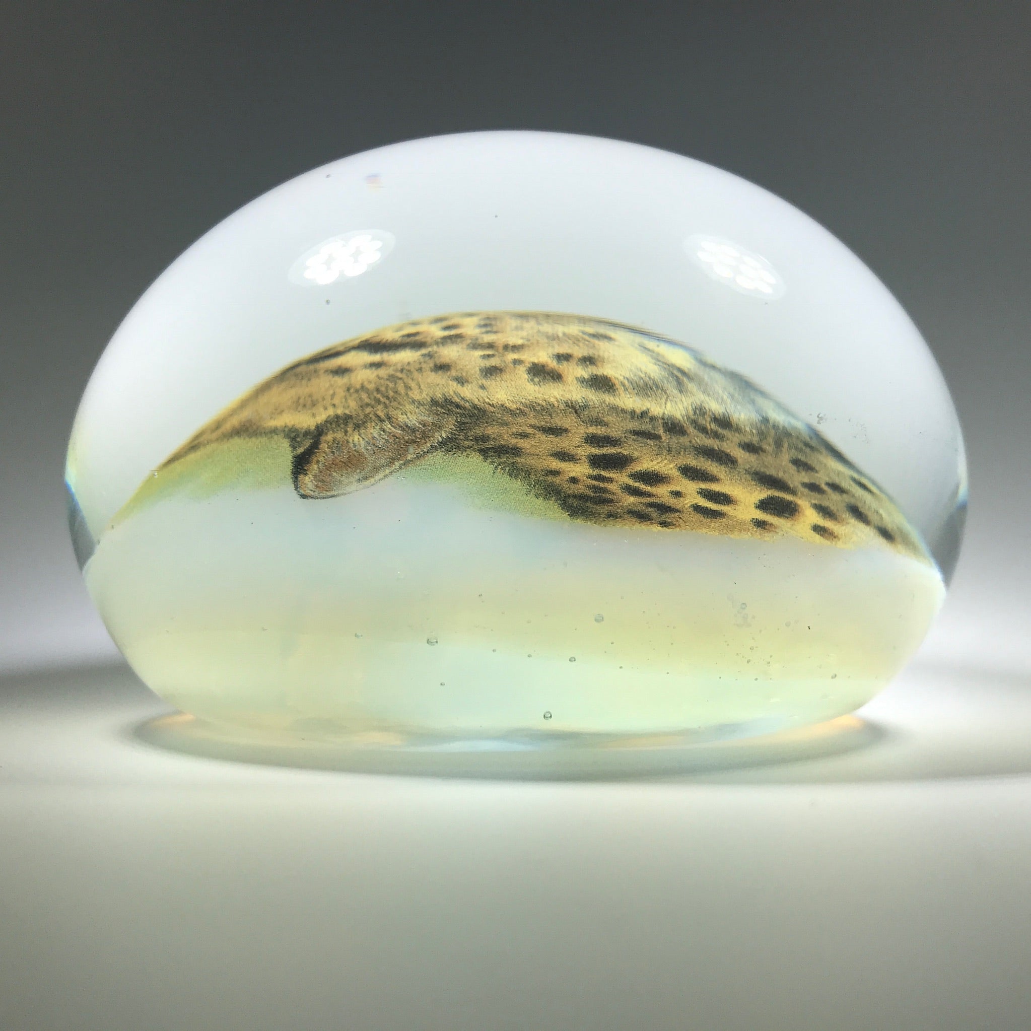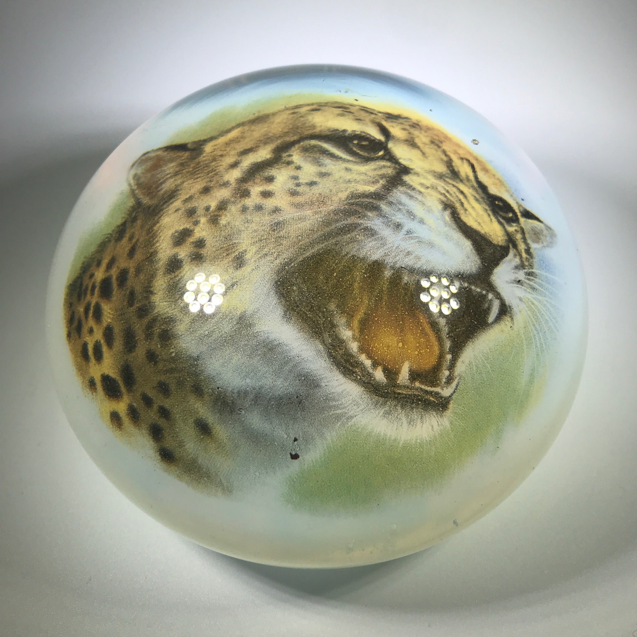 Huge Vintage Murano Art Glass Paperweight Detailed Encased Cheetah Image