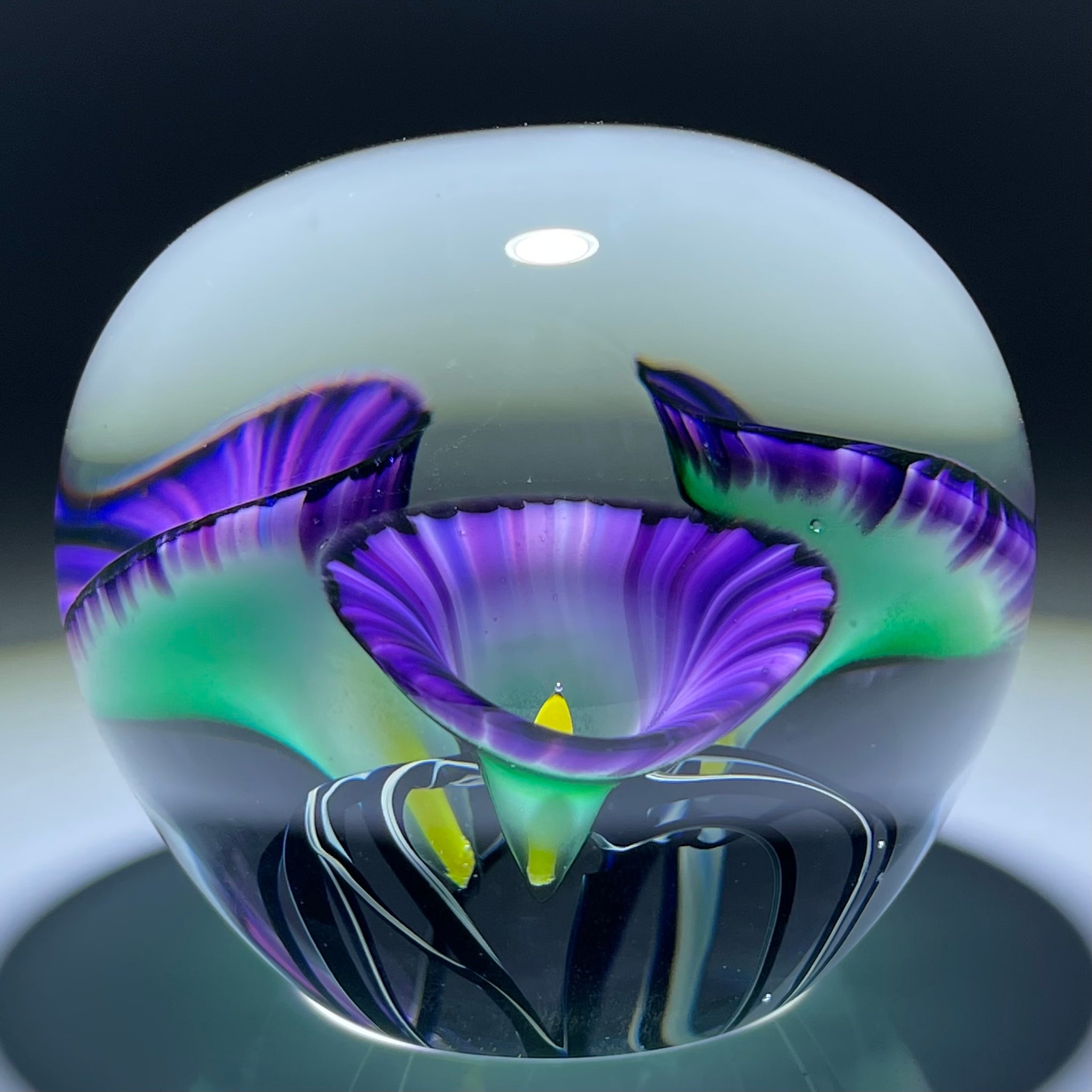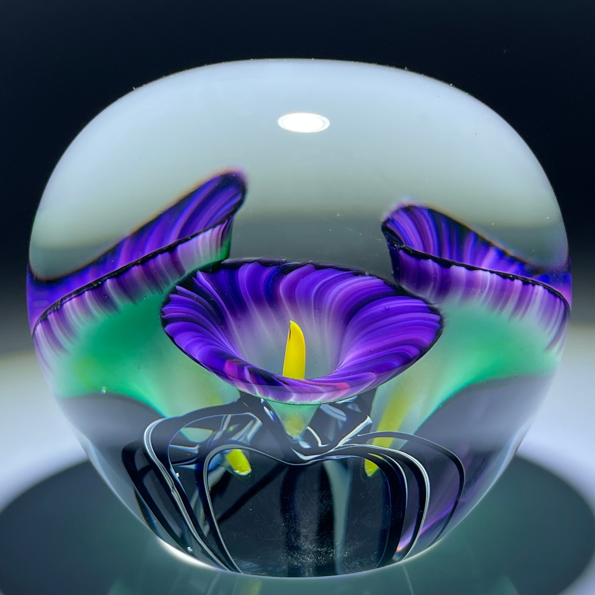 Jeremiah Lotton 2004 Torchwork Purple Calla Lily Trumpet Flowers Glass Paperweight