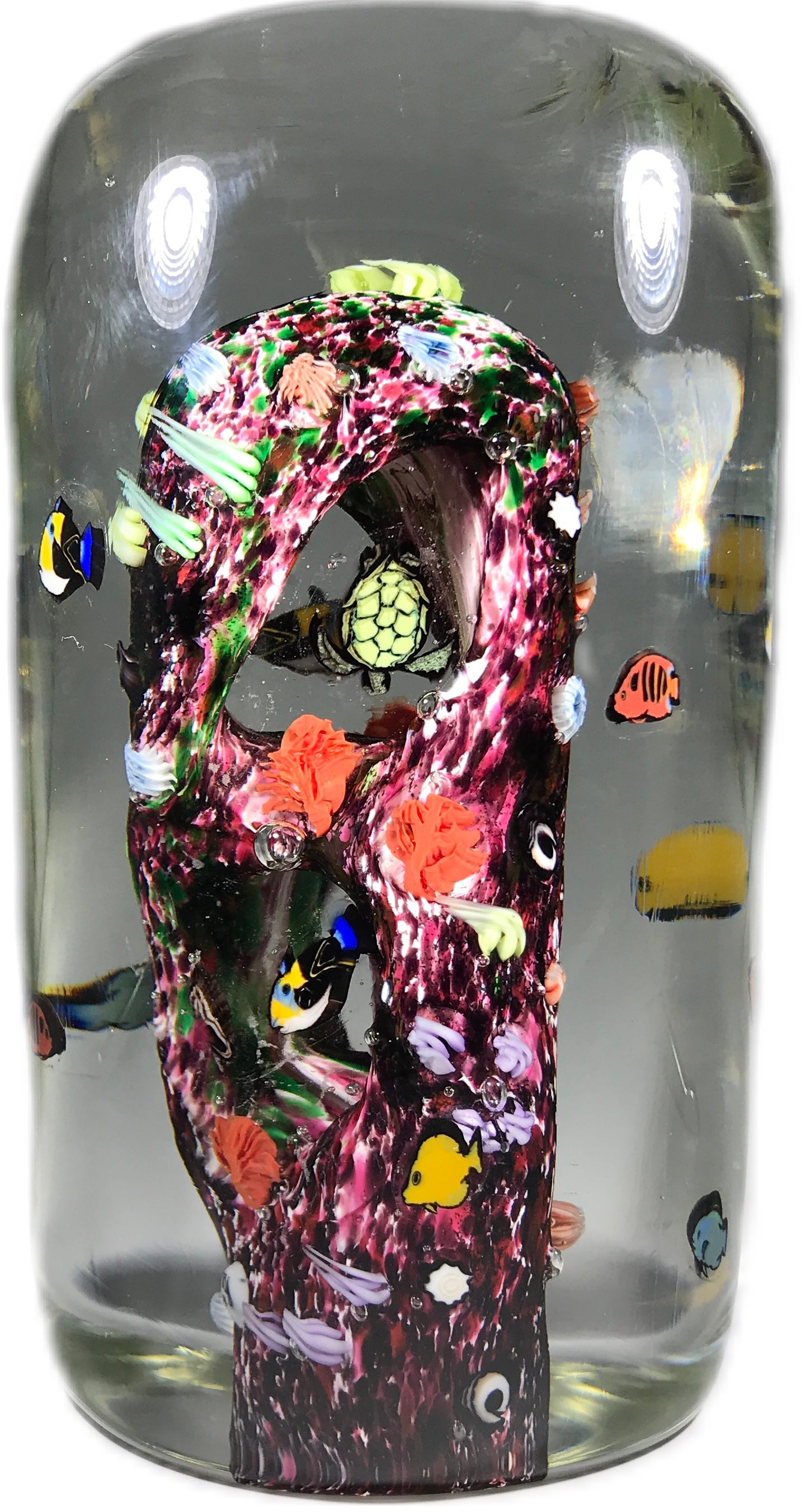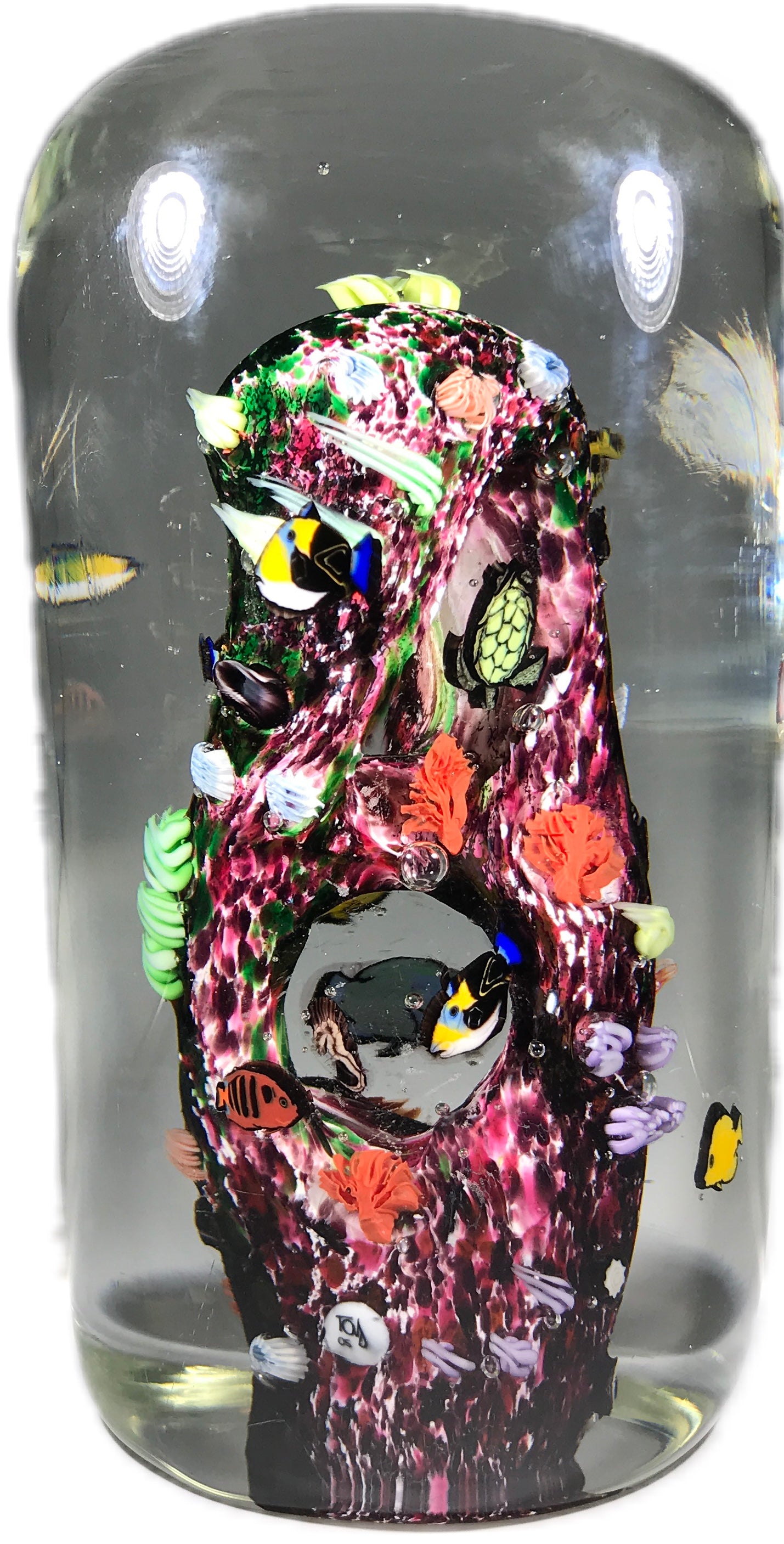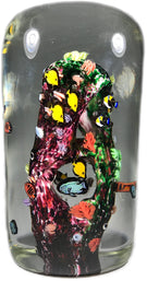 Jesse Taj 2005 Art Glass Paperweight Sculpture Large Coral Reef with Murrine Fish & Turtle