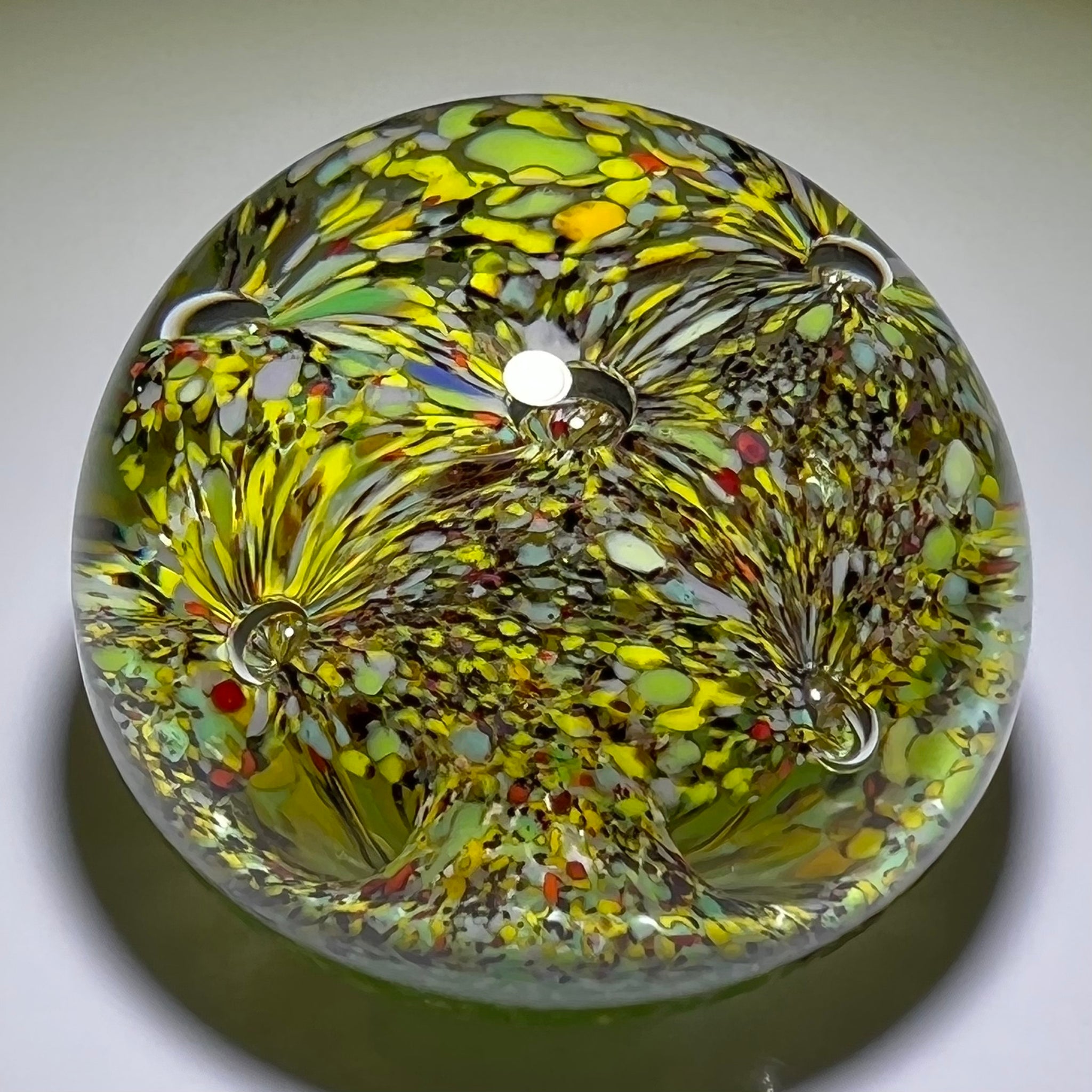 John Deacons Glass Art Paperweight Multi Colored Frit "Aladdin's Cave"