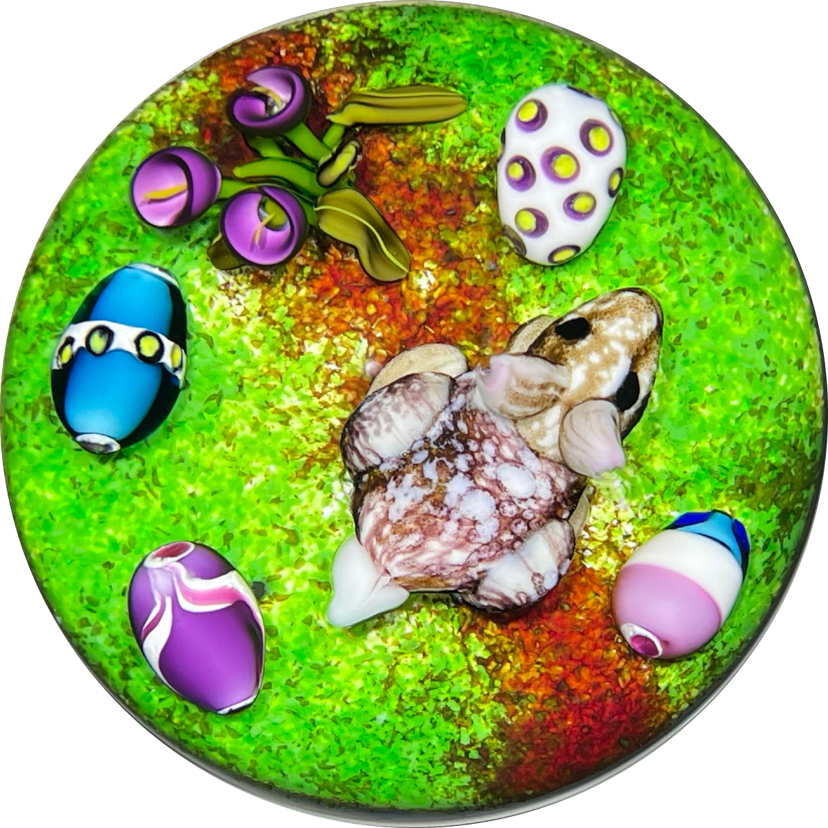Ken Rosenfeld 2020 Flamework Bunny with Colorful Easter Eggs & Flowers