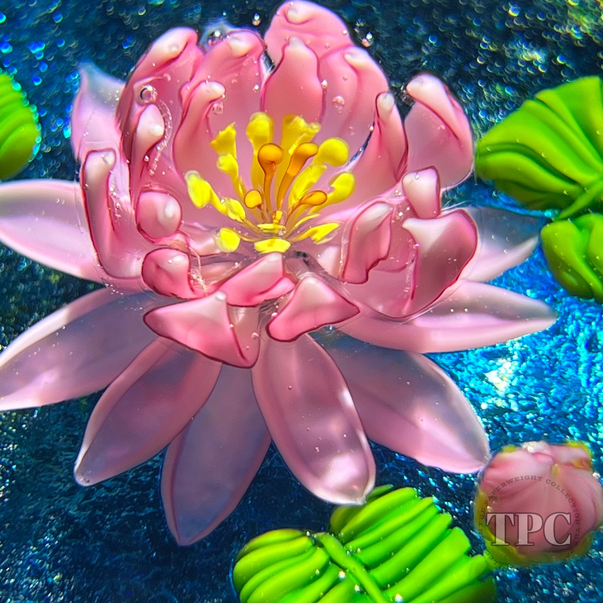 Ken Rosenfeld 2022 Glass Art Paperweight Flamework Pink Waterlilies