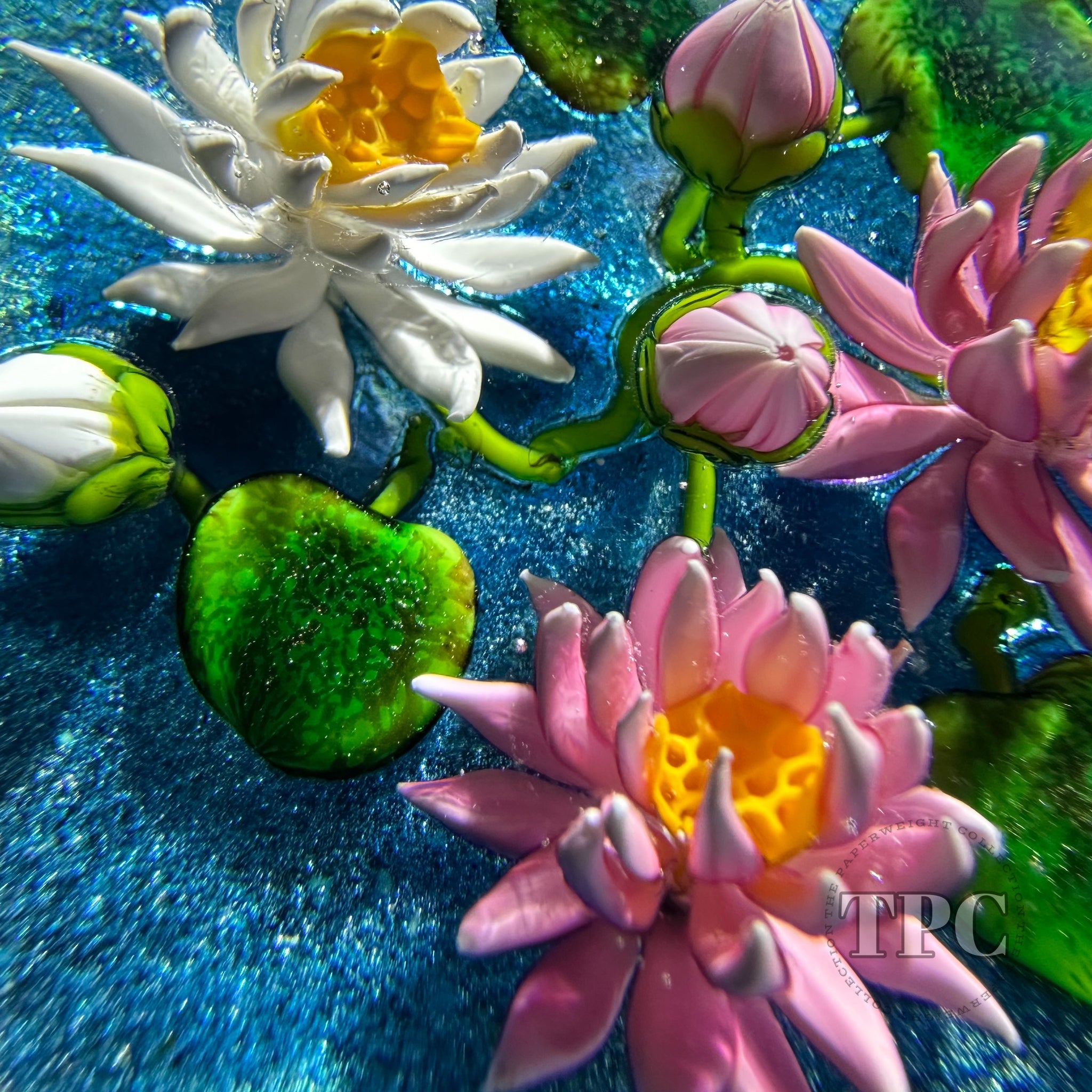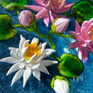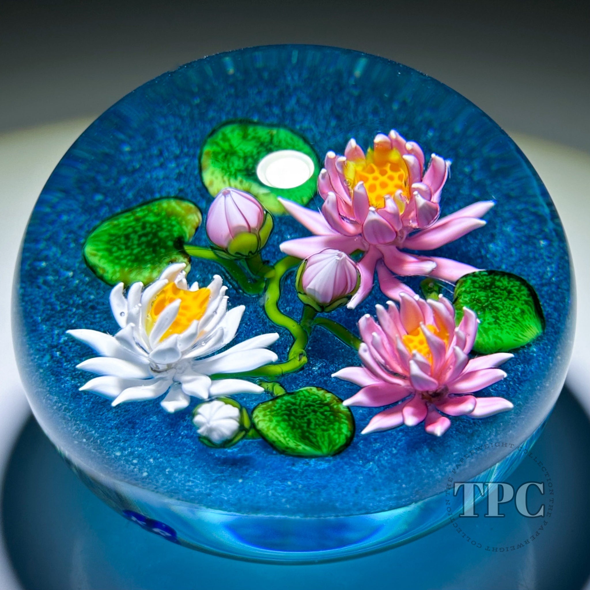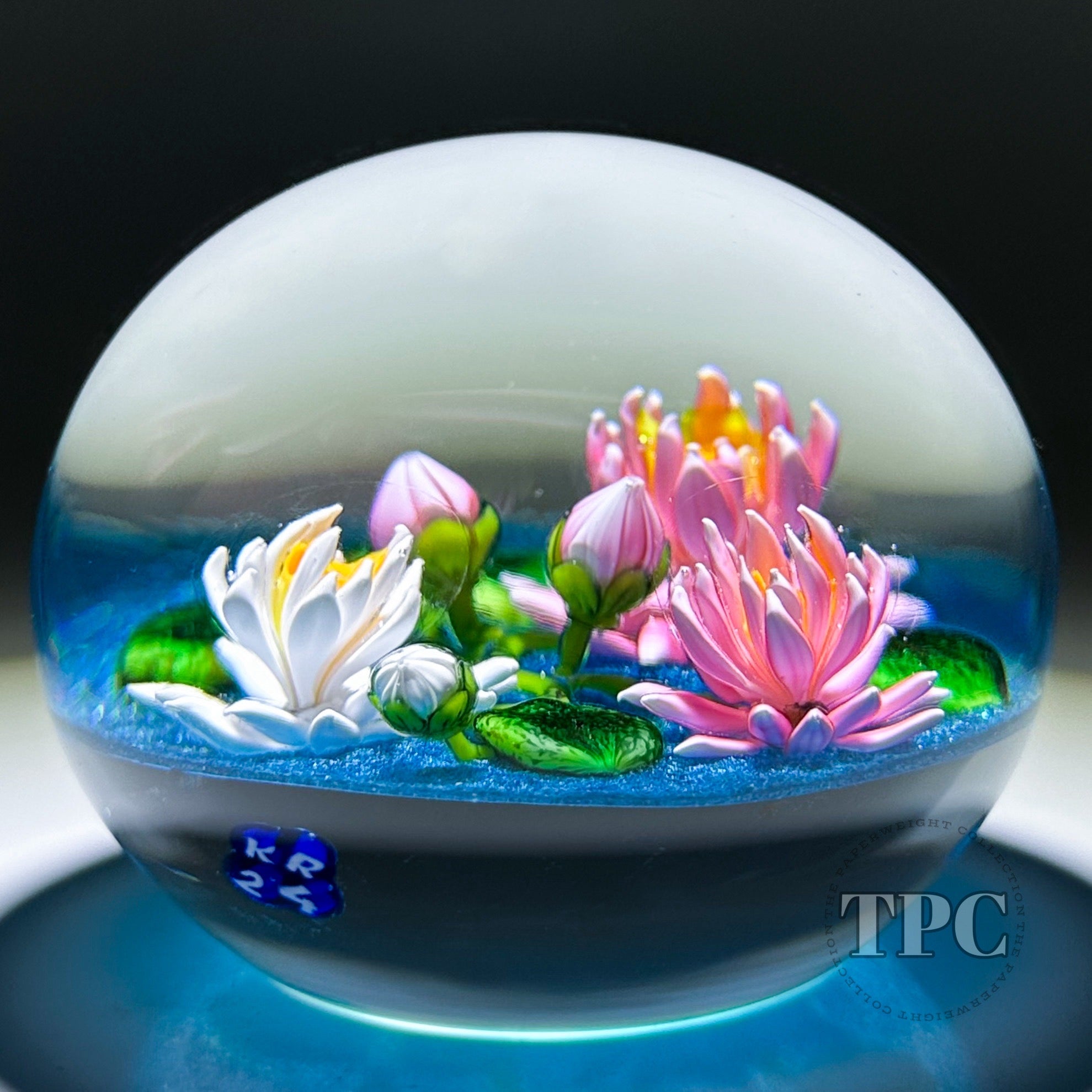 Ken Rosenfeld 2024 Glass Art Paperweight Flamework Pink & White Waterlilies