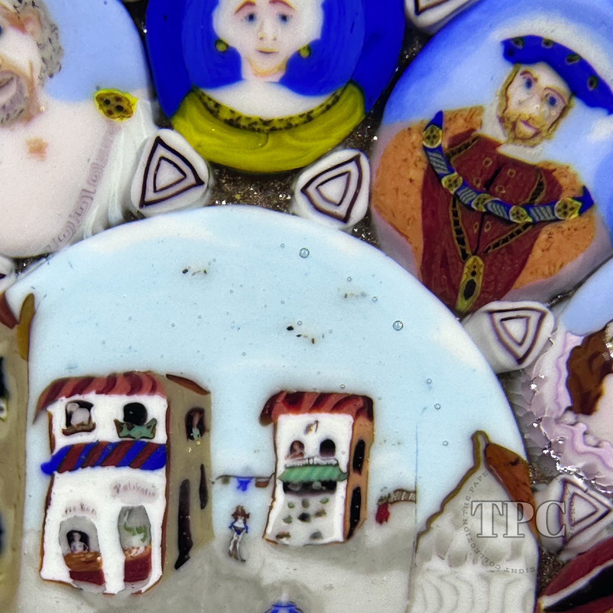 Loren Stump 2001 Glass Art Paperweight Murrine Portraits & Italian Piazza