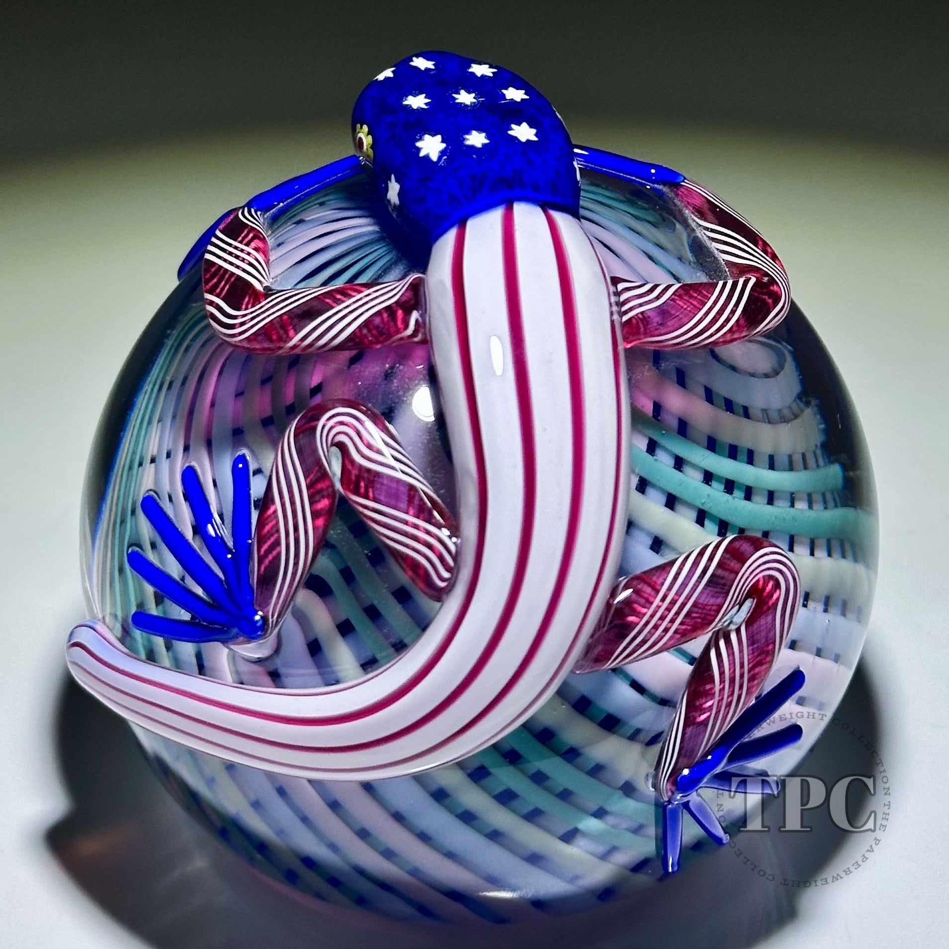 Michael Hunter 2025 Glass Art Paperweight Stars & Stripes Lizard Pastel Reticello Crown