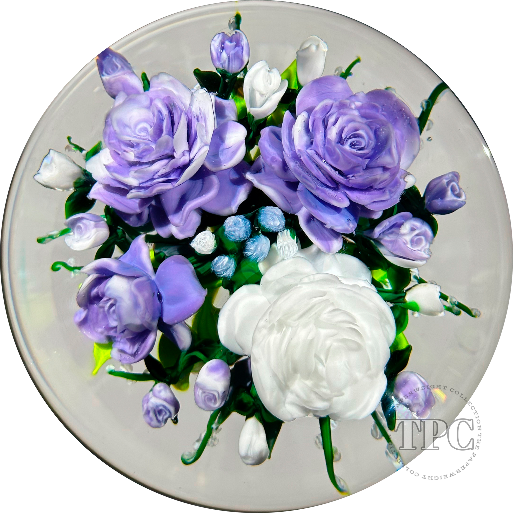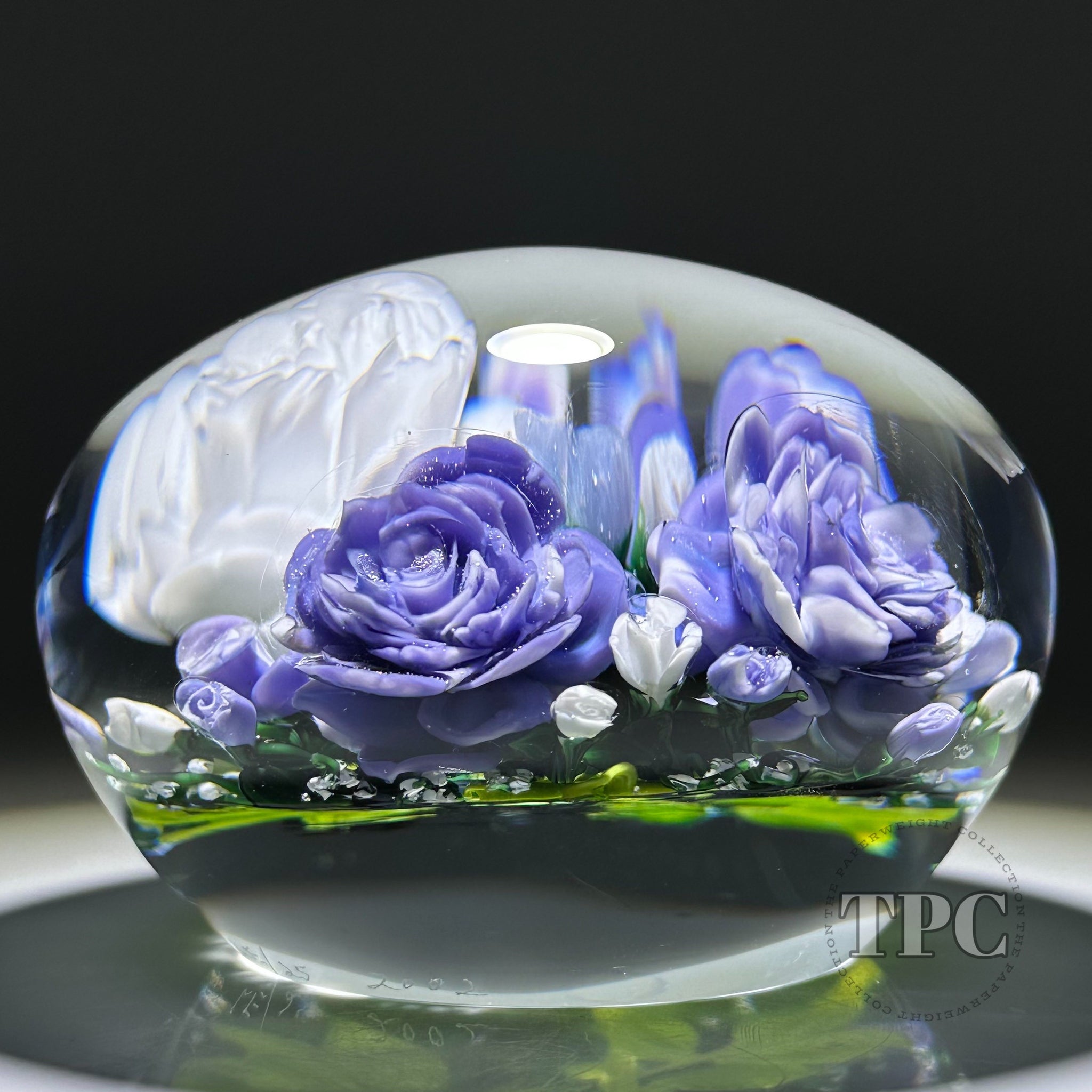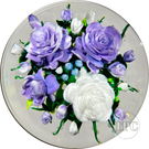 Rick Ayotte 2002 Glass Art Paperweight Flamework Purple & White Rose Bouquet