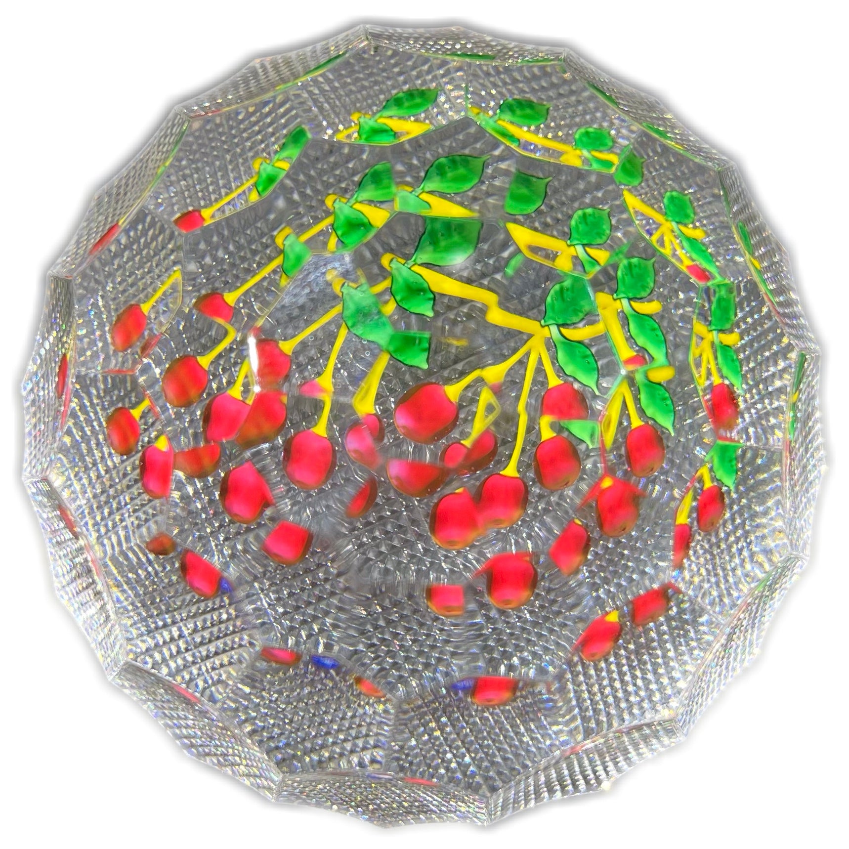 A truly dazzling display featuring a gathering of ripe red cherries amplified and multiplied by a complex all over faceting. Limited to just 150 pieces.