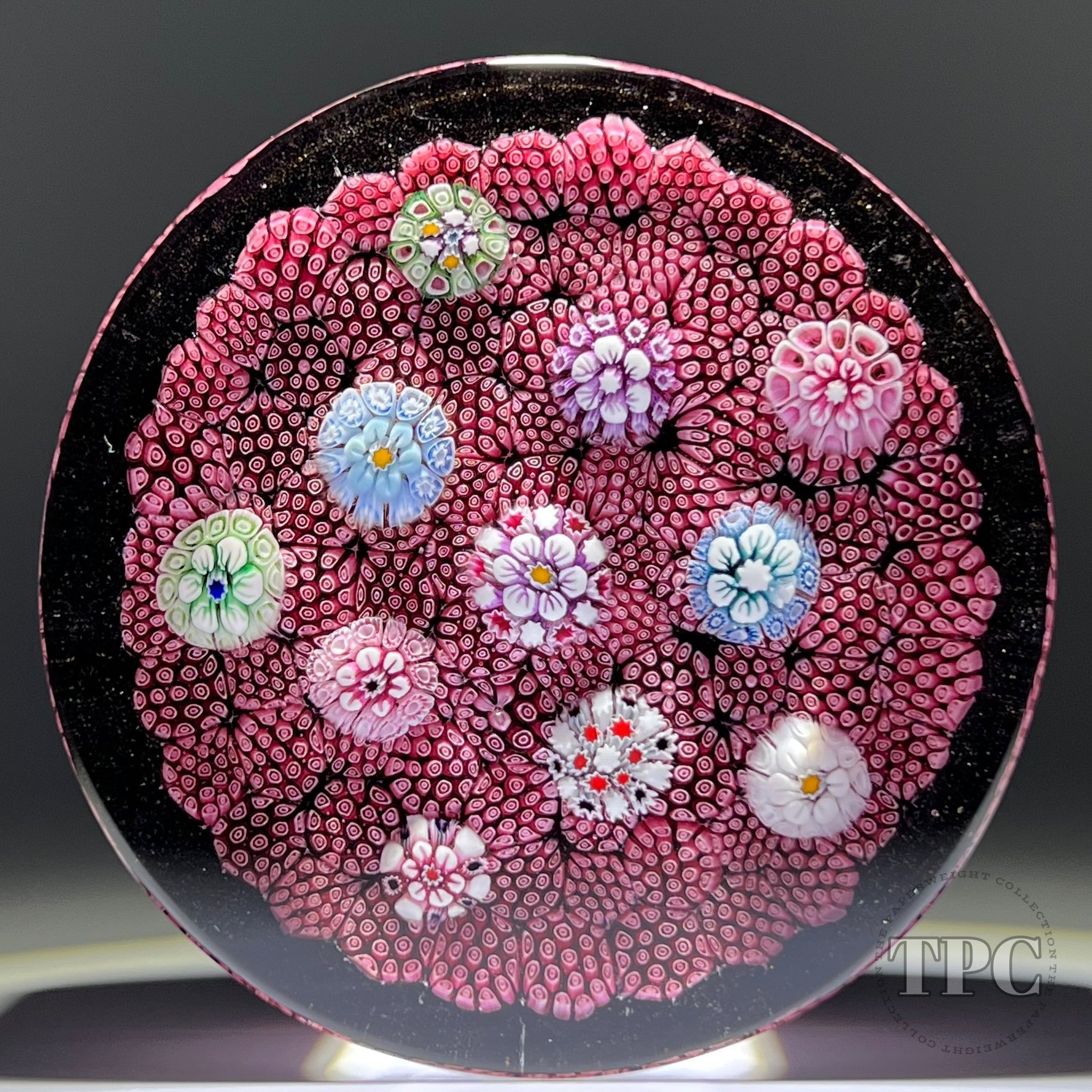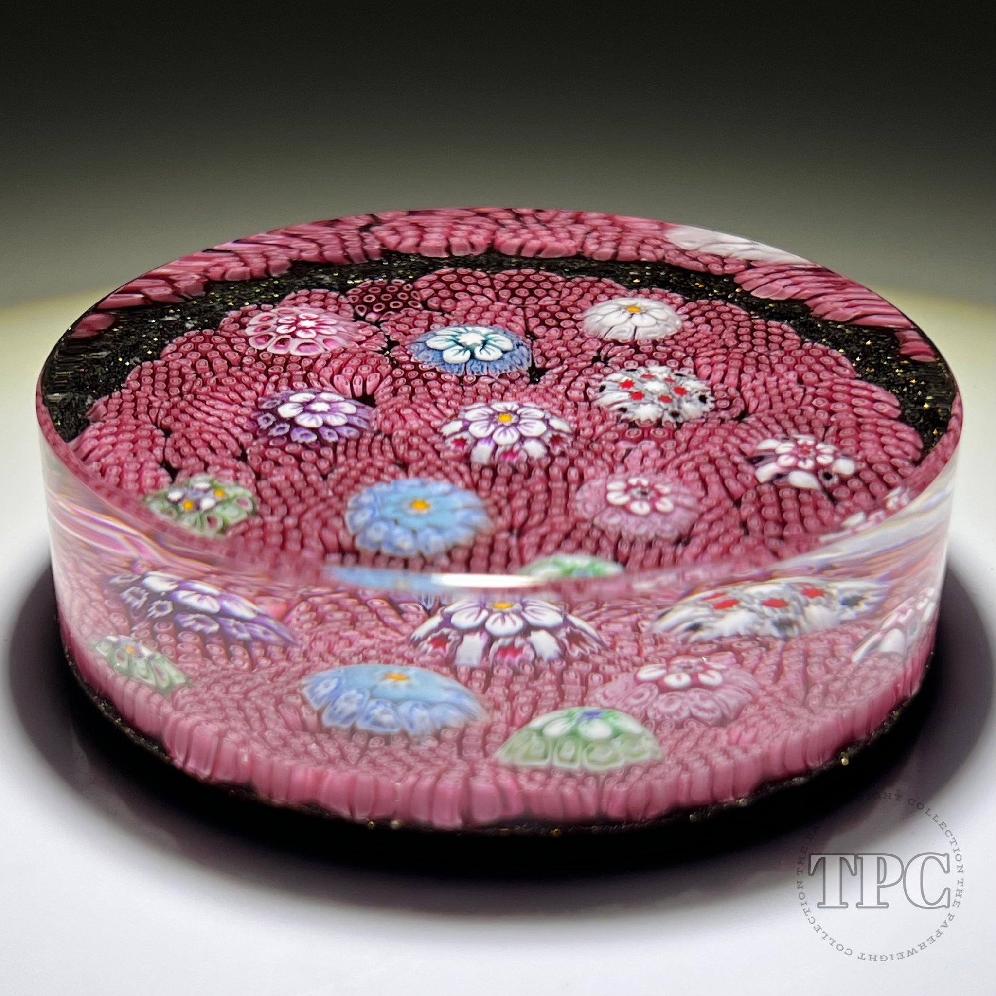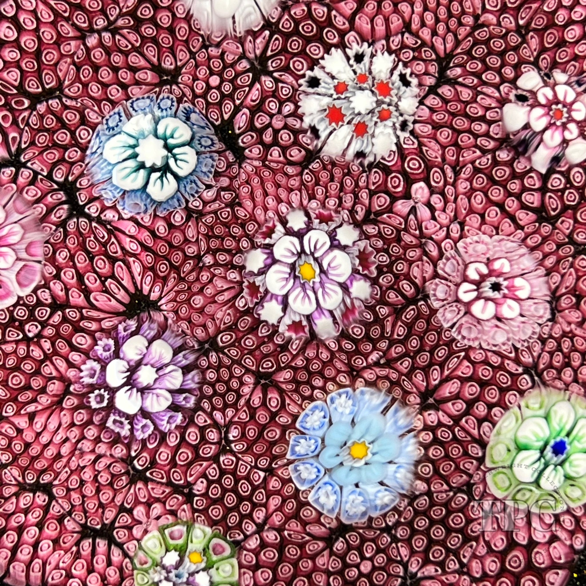 Tomasz Gondek 2022 Glass Art Paperweight Plaque Scattered Complex Millefiori on Red Coral Ground