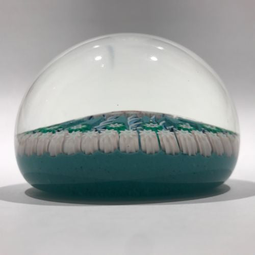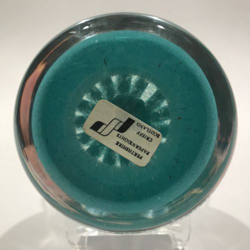 Makers Mark: Central signature “P” cane embedded in the setup and it still retains the original paper label, “Perthshire Paperweights Crieff Scotland”.