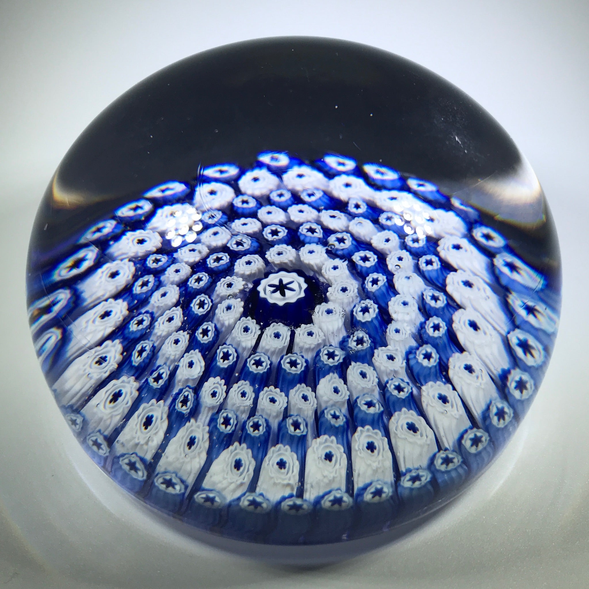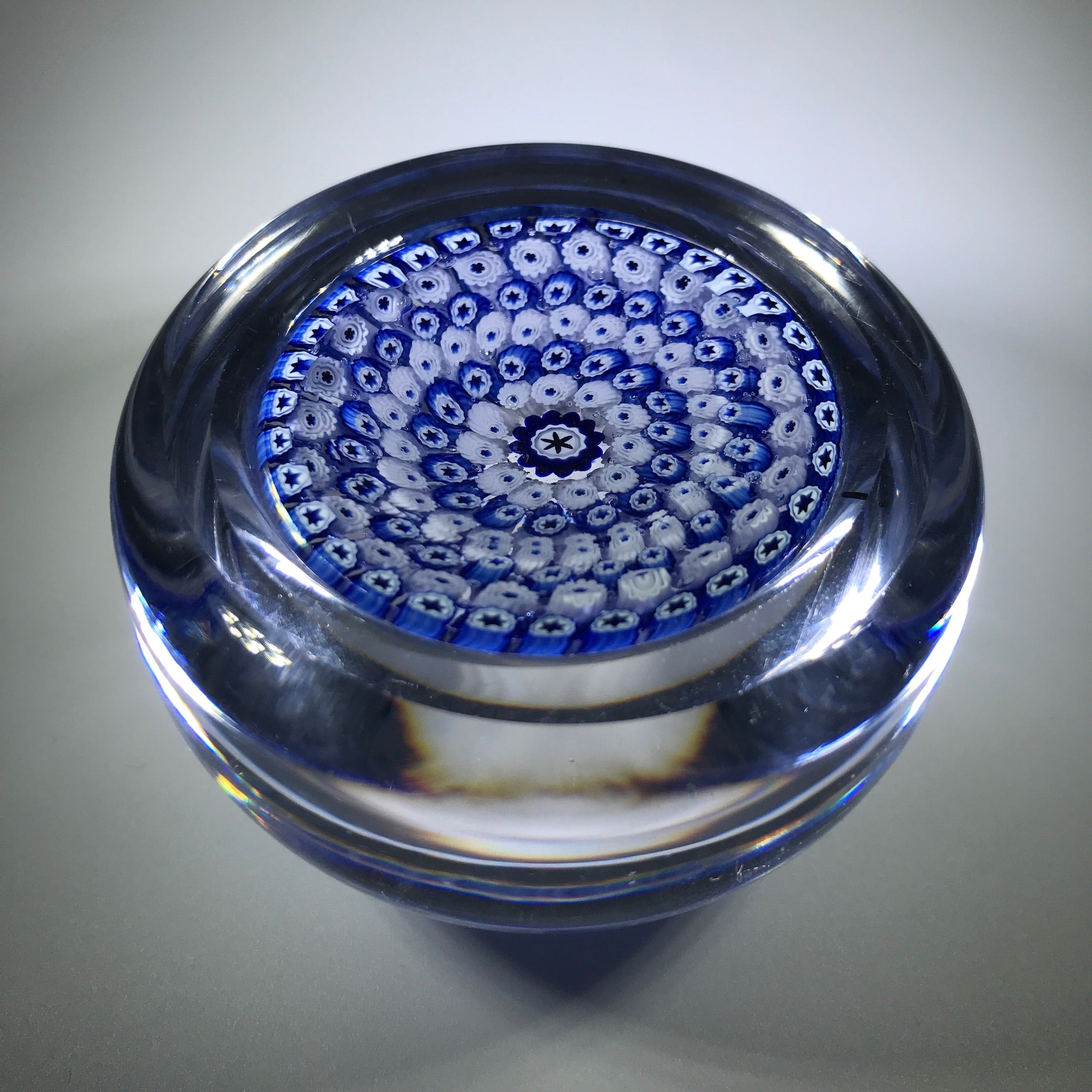 Vintage Whitefriars Art Glass Paperweight Concentric Blue & White Millefiori