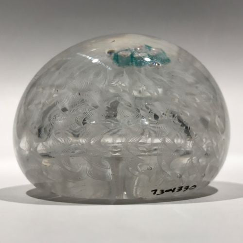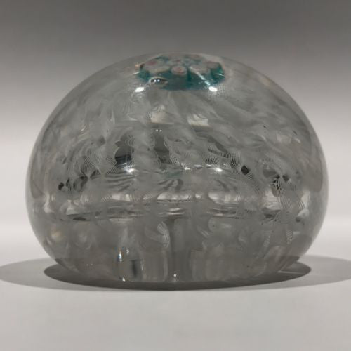 I rare B&S crown with white latticino and a complex center cane at the top. Partially hollow blown with a fully sealed cavity.