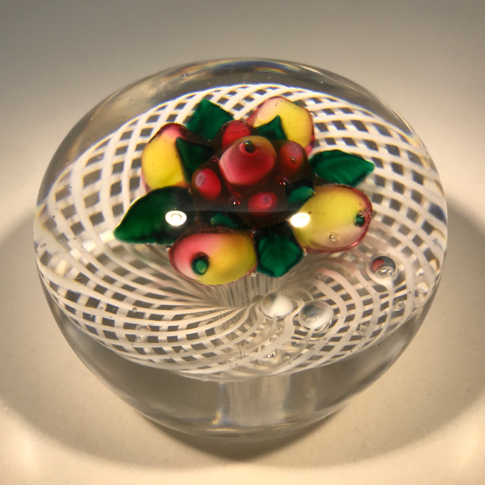 Antique New England Glass Co. NEGC Art Glass Paperweight Fruit Latticino Basket